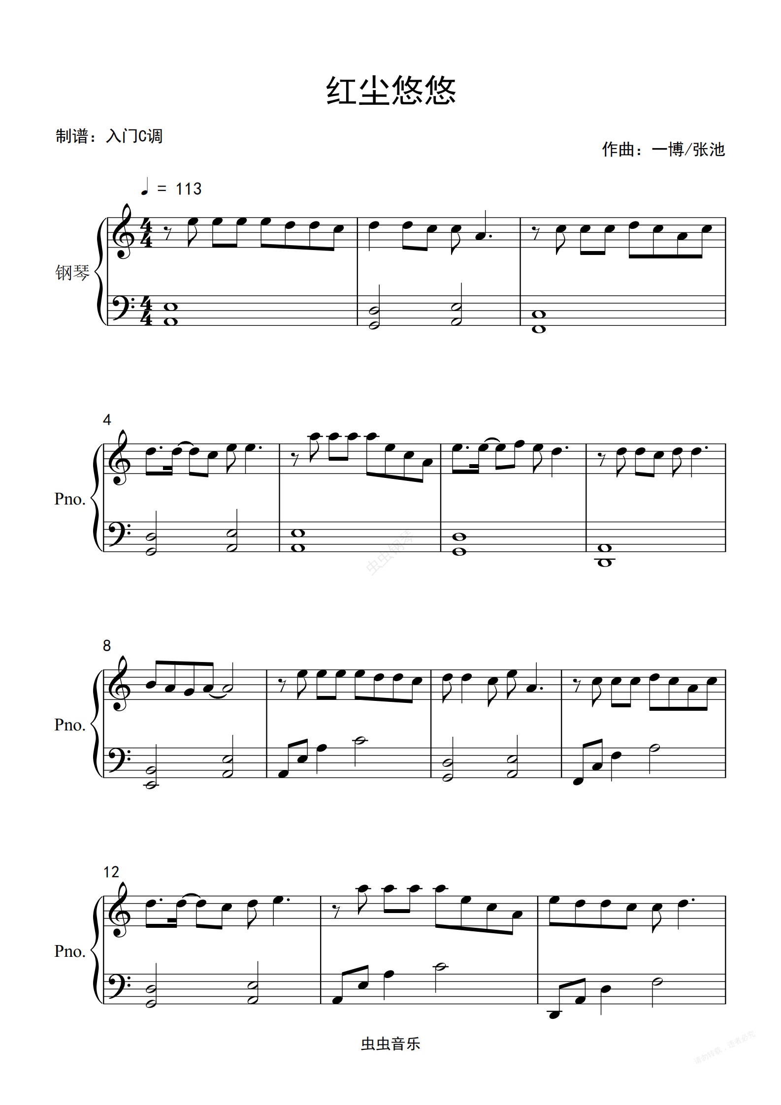 钢琴谱:颜一彦《红尘悠悠》C调简单版