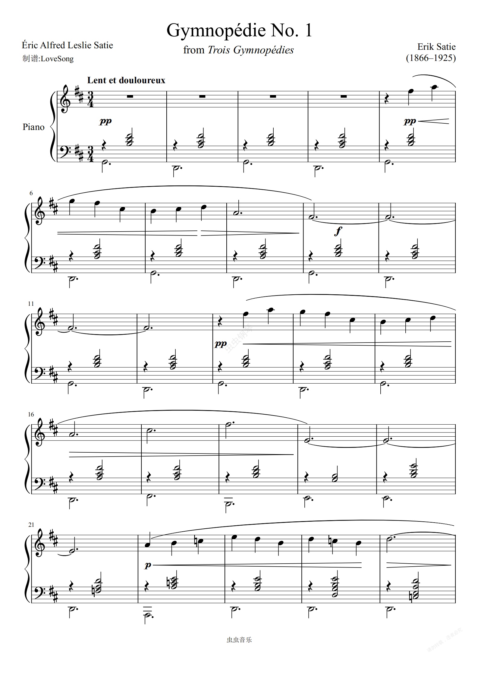 钢琴谱:萨蒂裸体舞曲 裸者之舞 吉诺佩蒂1号 钢琴谱带指法原版