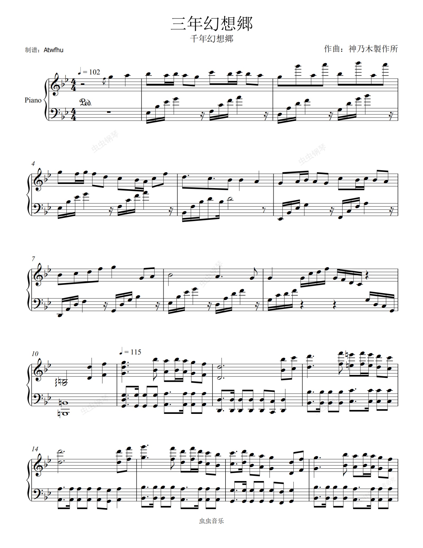 钢琴谱:【东方永夜抄】三年幻想郷 {千年幻想郷 ~ History of the Moon} -神乃木製作所