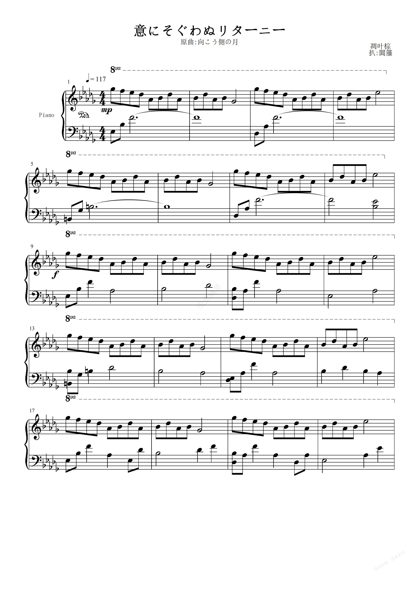 钢琴谱:【东方project】意にそぐわぬリターニー {向こう側の月} -凋叶棕