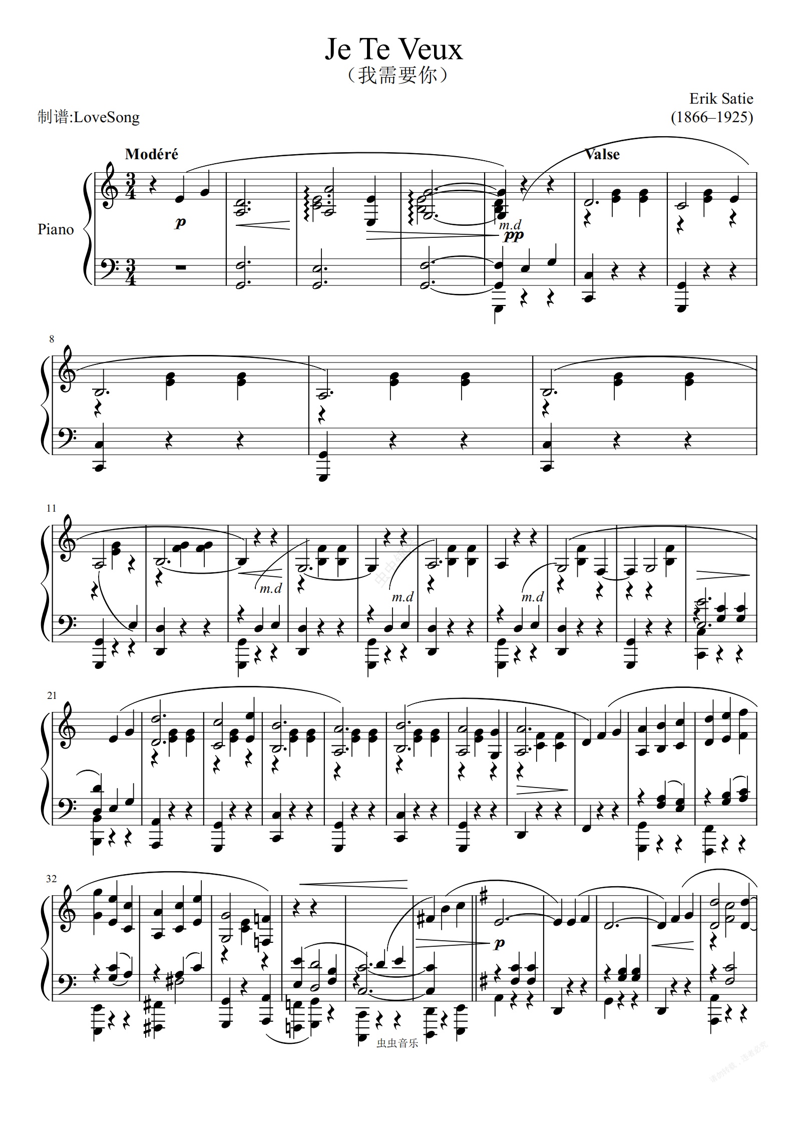 钢琴谱:萨蒂 Je Te Veux 我需要你 钢琴谱原版