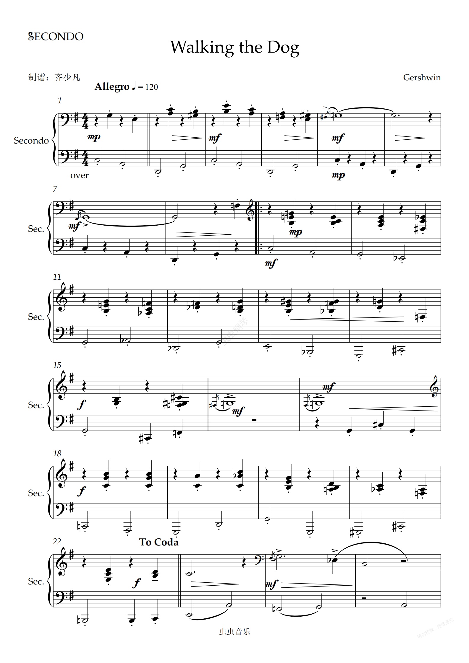 钢琴谱:【四手联弹】Walking the dog 格什温