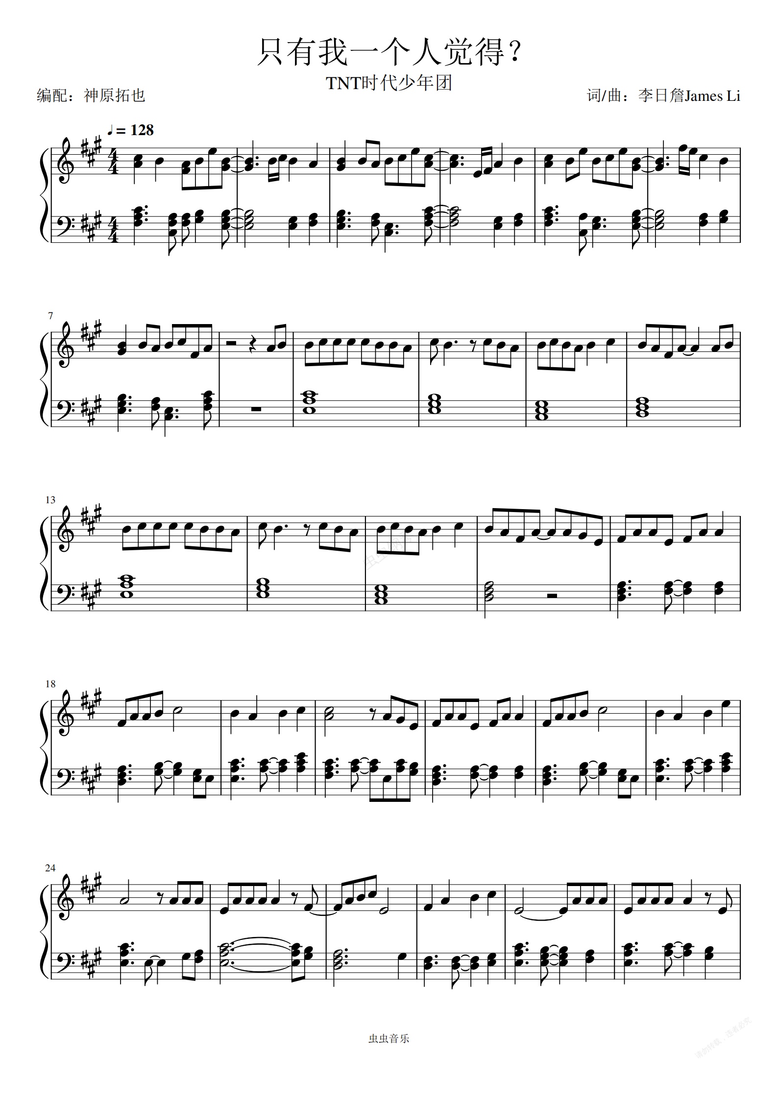 钢琴谱:只有我一个人觉得  TNT时代少年团