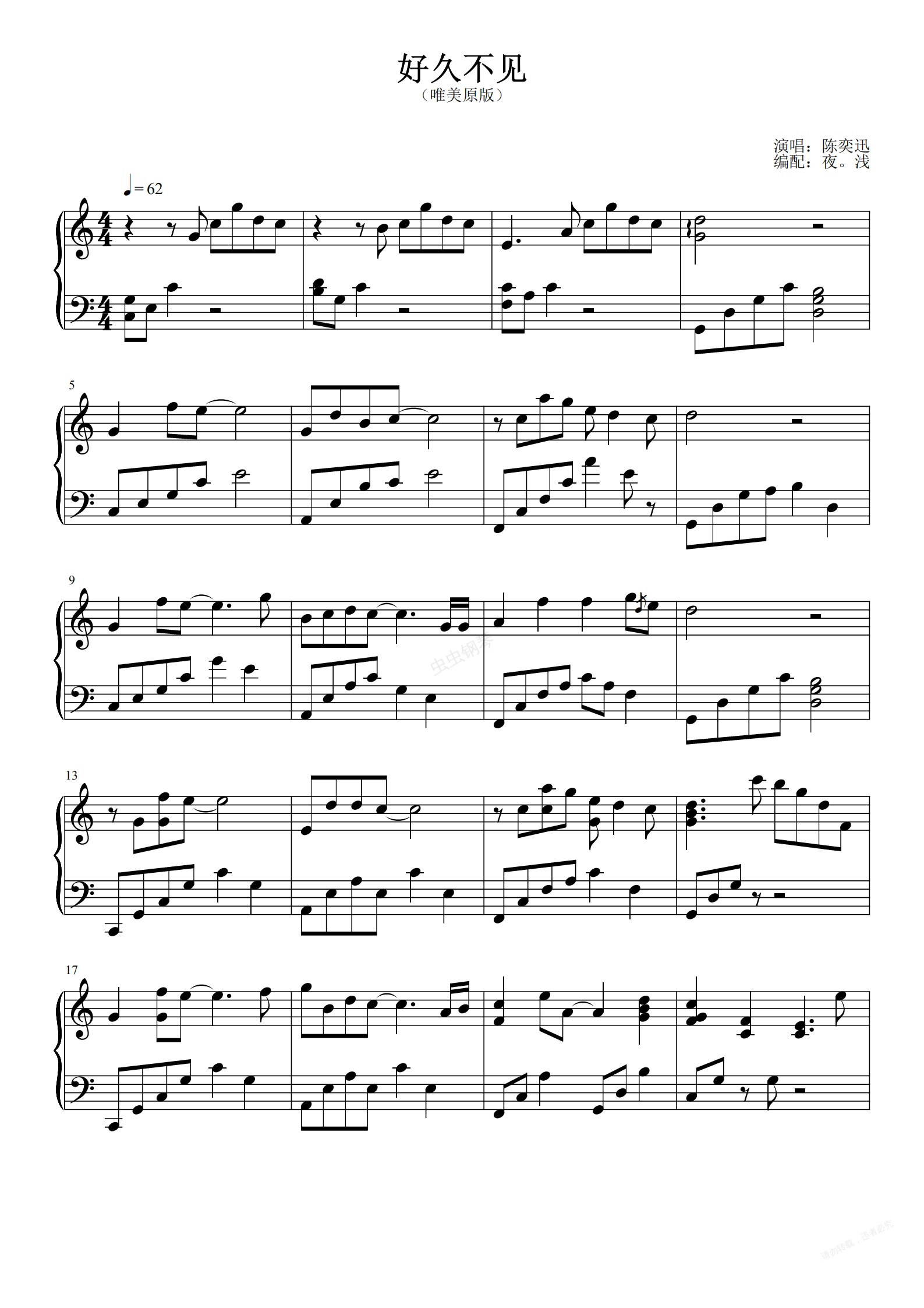 钢琴谱:《好久不见》陈奕迅~完整原版钢琴谱