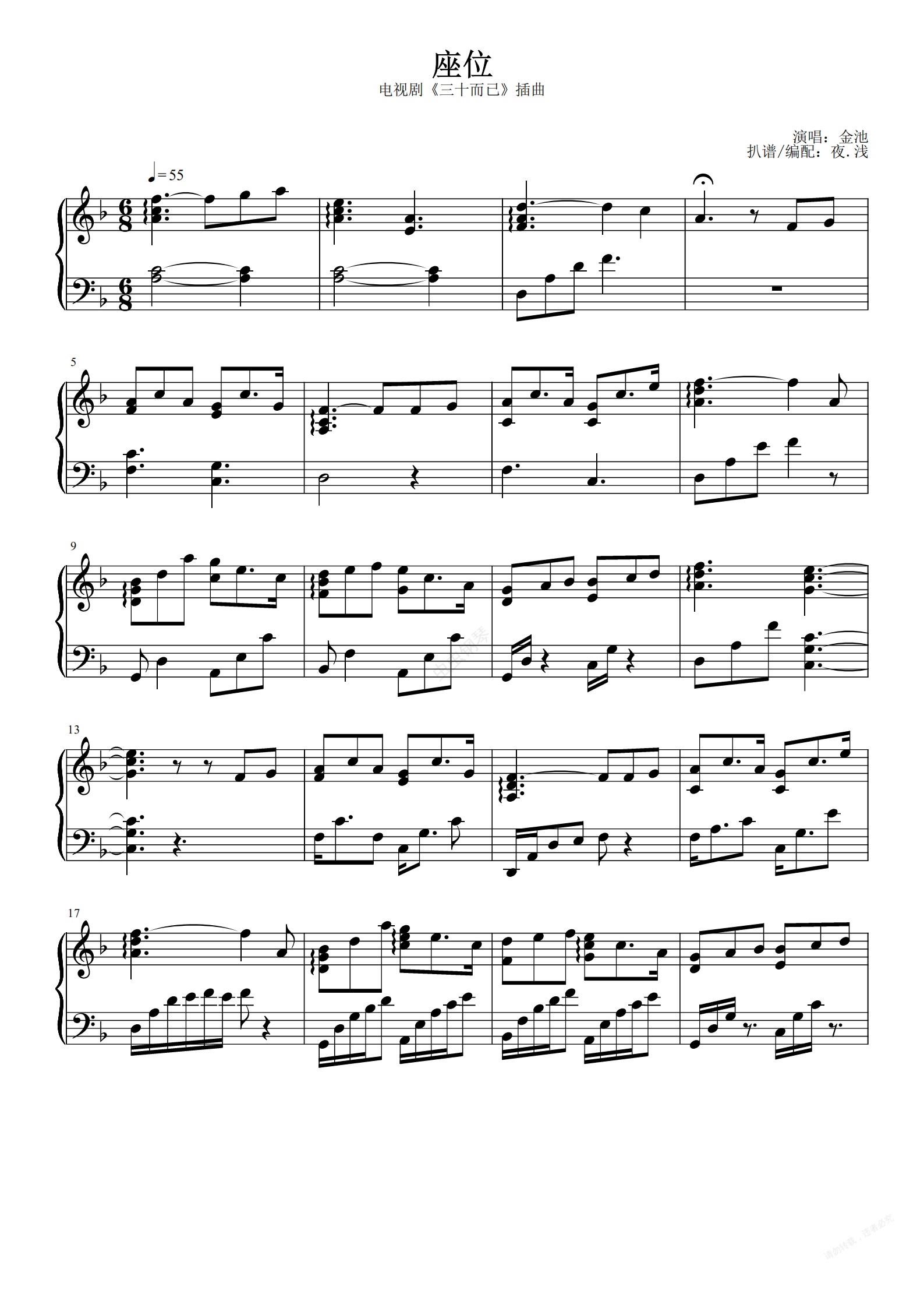 钢琴谱:《座位》三十而已插曲~原版钢琴谱