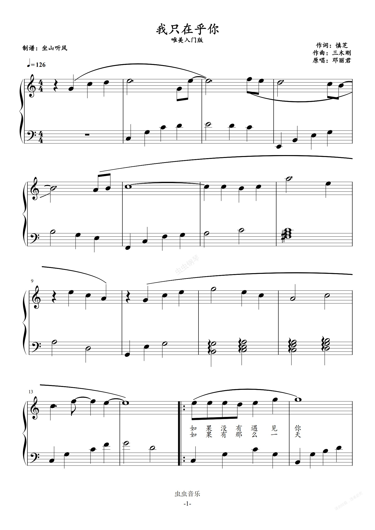 钢琴谱:我只在乎你——唯美入门版