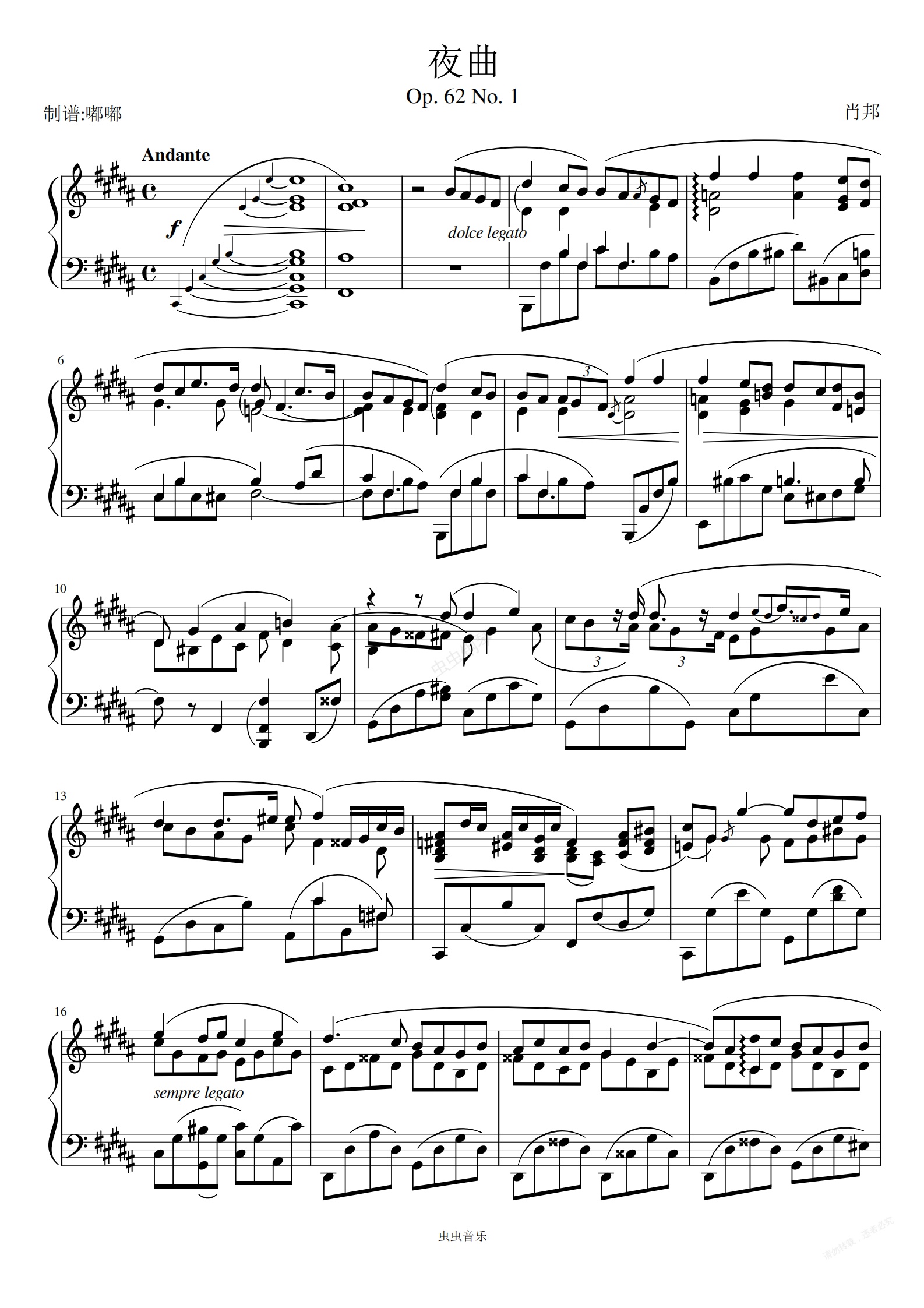 钢琴谱:肖邦《夜曲》——Op. 62 No. 1