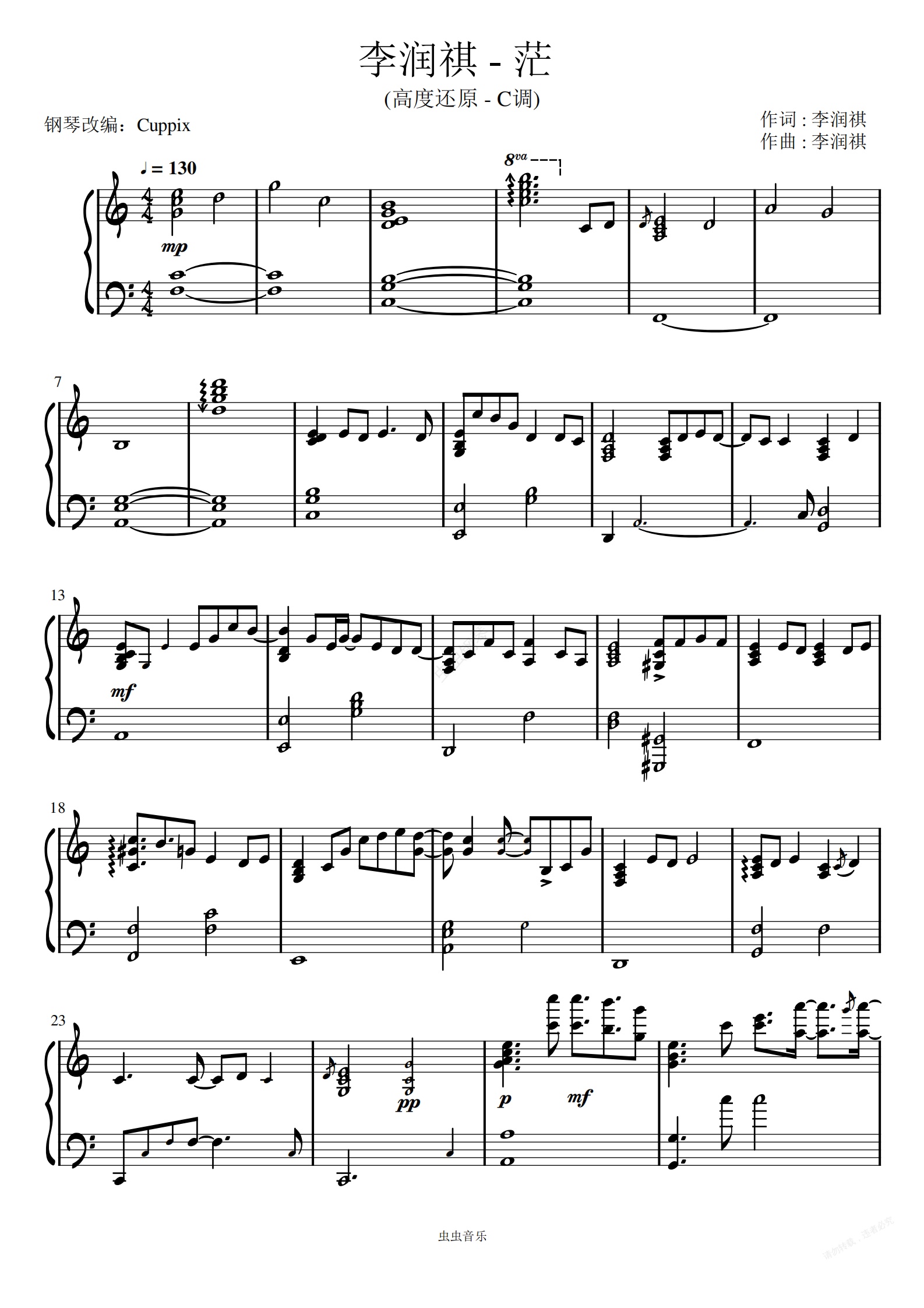 钢琴谱:李润祺《茫》高度还原版-C调(Cuppix改编)