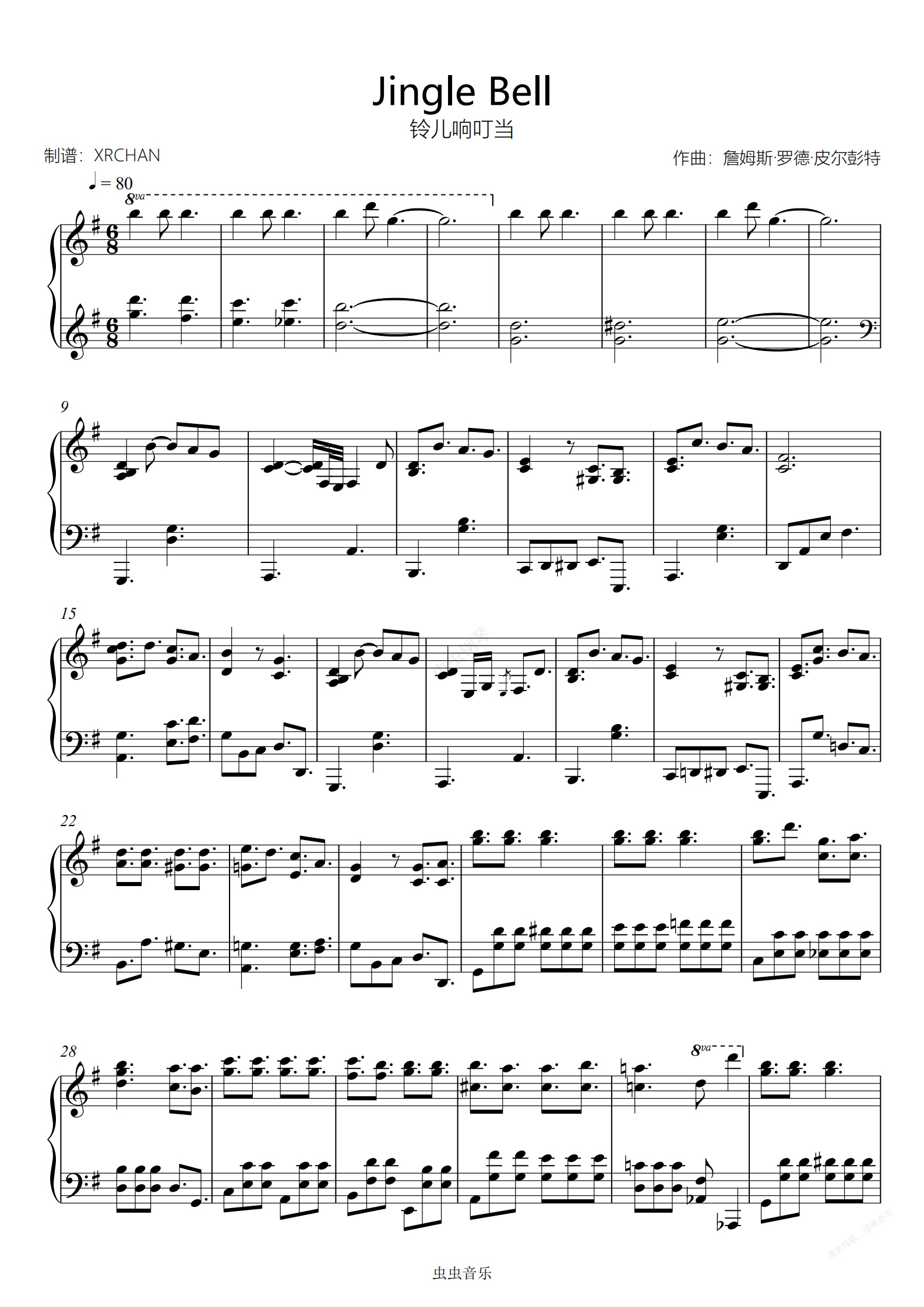 钢琴谱:Jingle Bell 铃儿响叮当 圣诞音乐 优美动听