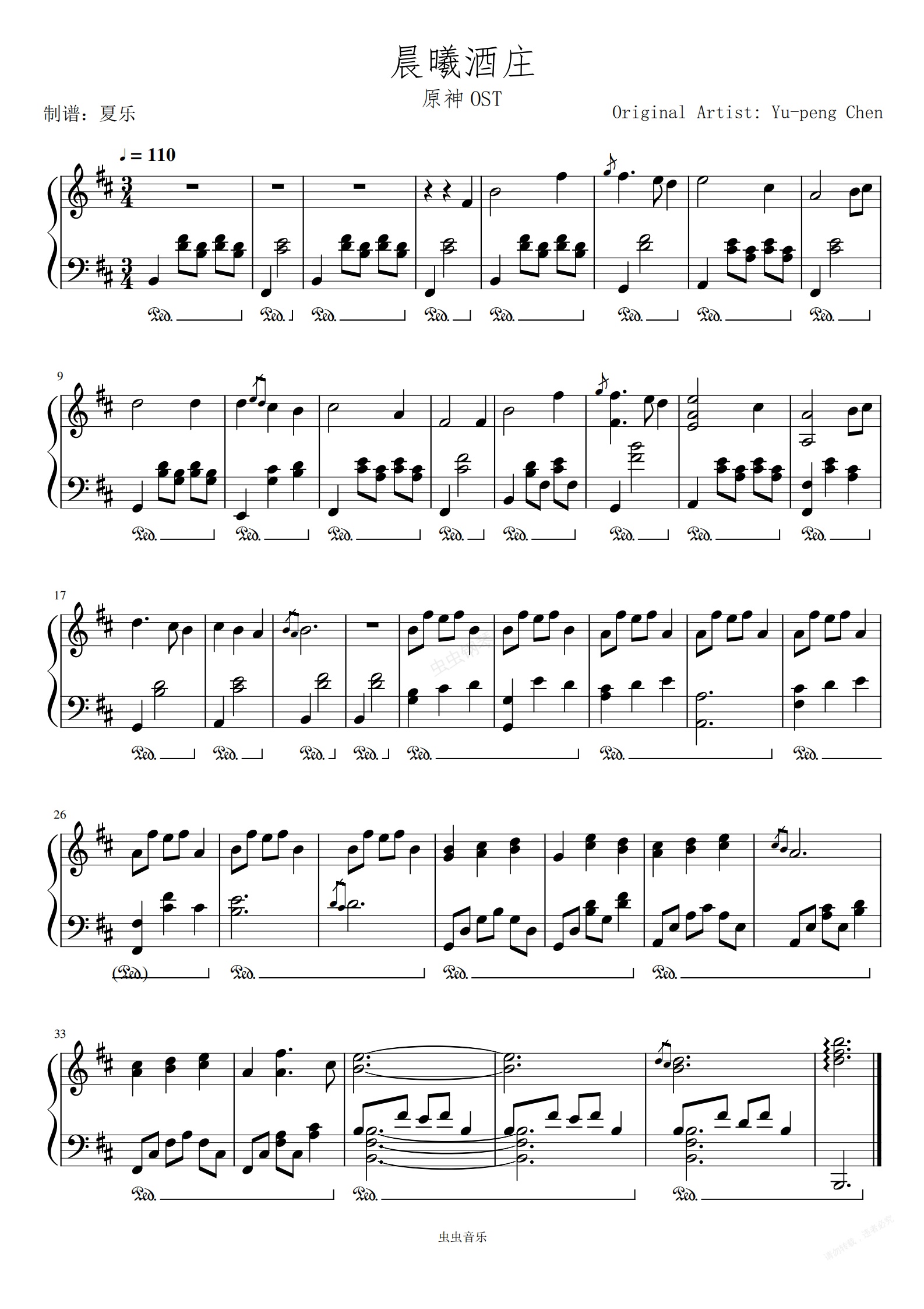 钢琴谱:【原神/钢琴】晨曦酒庄 如微风般恬静悠闲的旋律