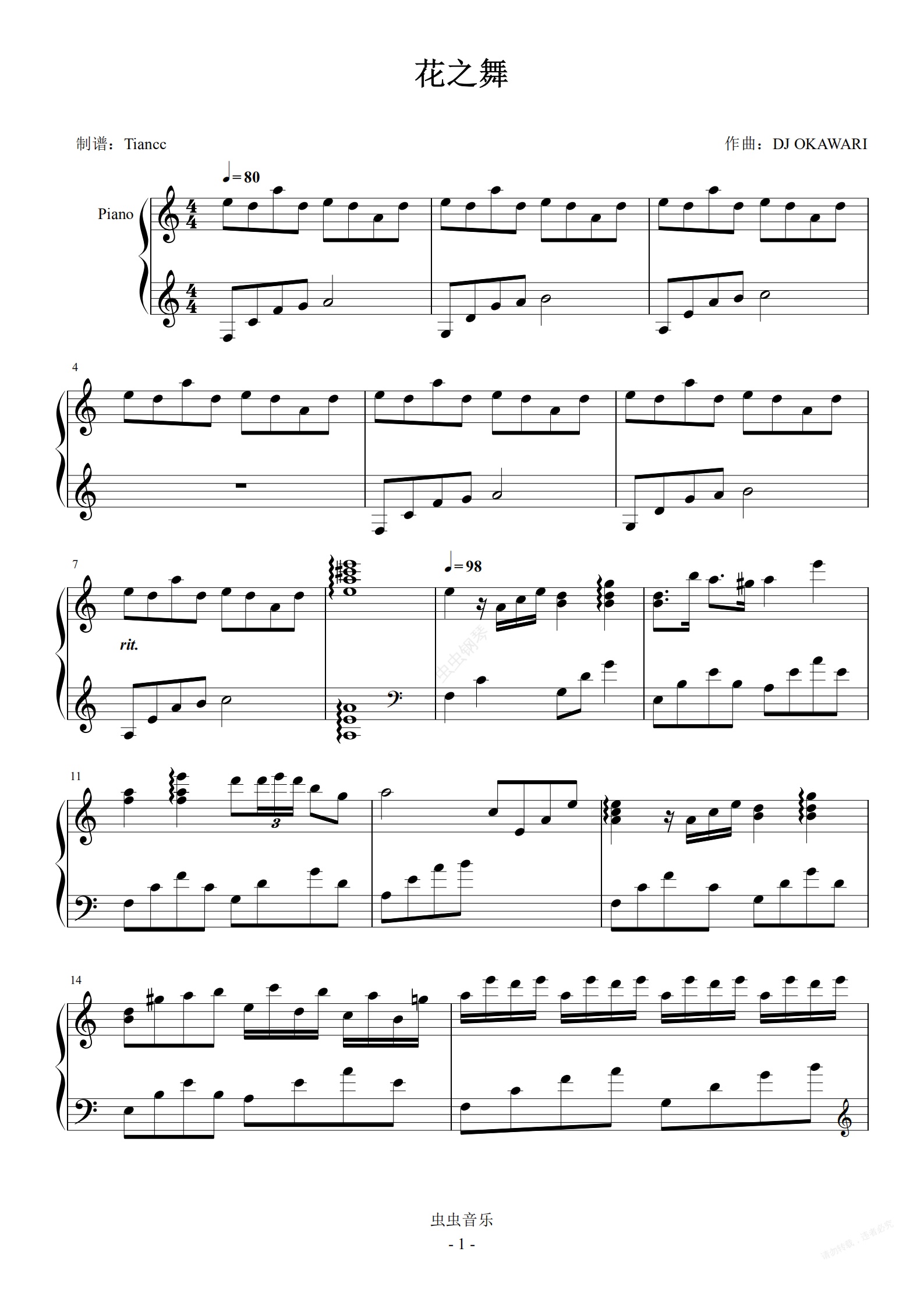 钢琴谱:《花之舞--Flower Dance》完美可弹优化版,C大调849难度
