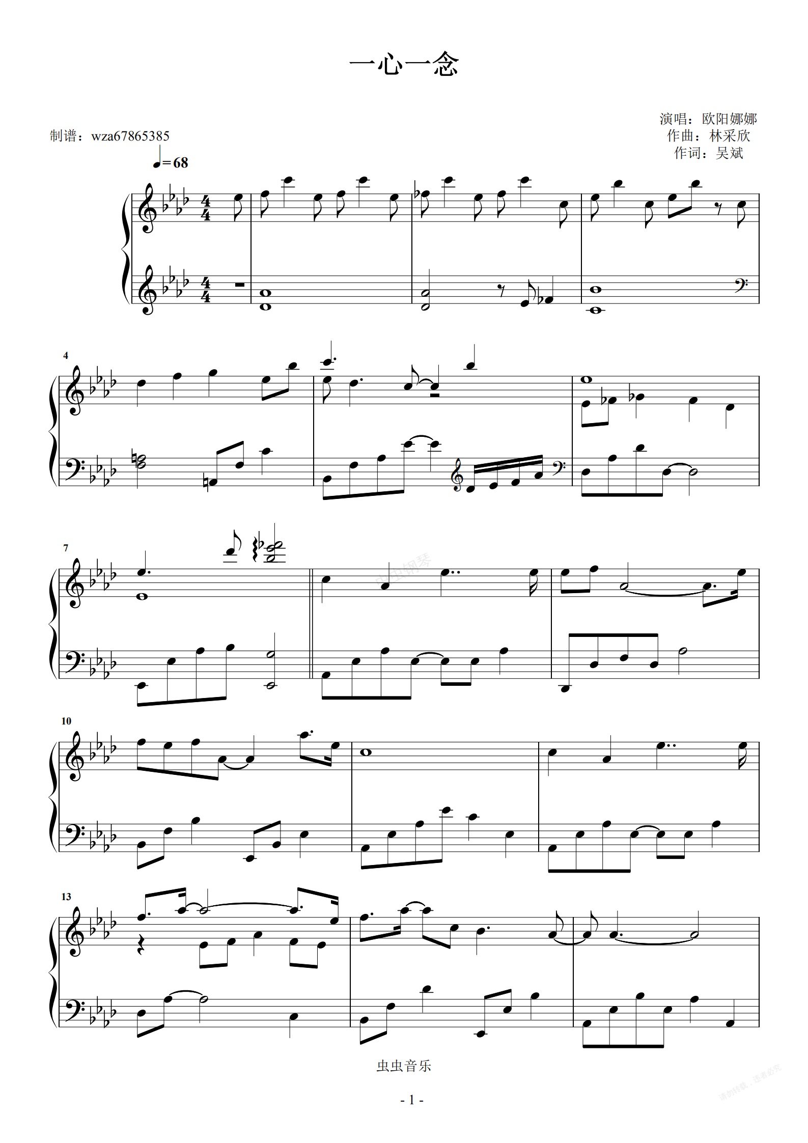 钢琴谱:一心一念