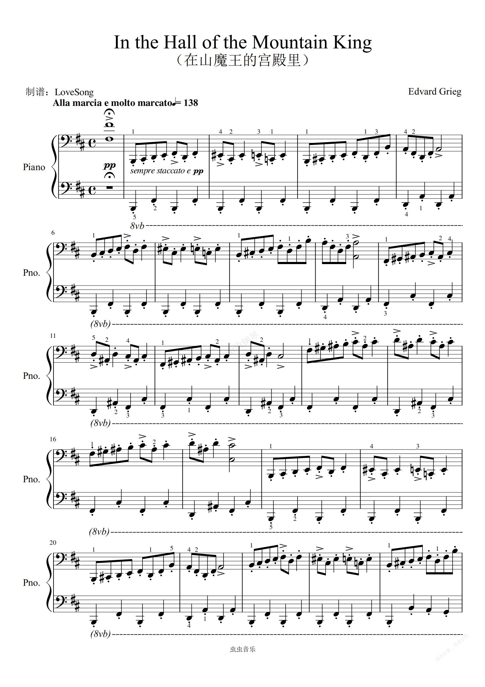 钢琴谱:格里格 在山魔王的宫殿里 钢琴谱带指法 原版