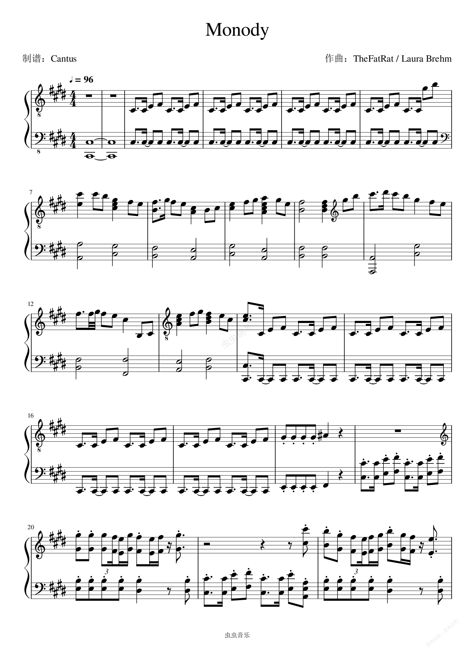 钢琴谱:Monody