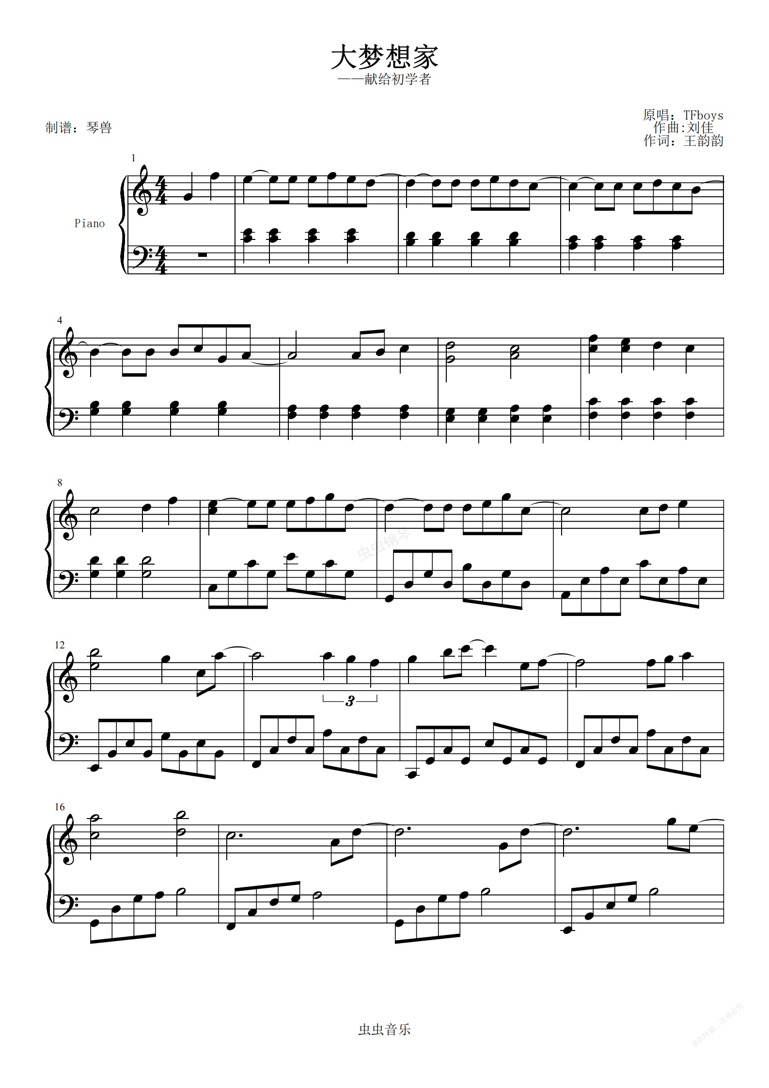 钢琴谱:大梦想家-tfboys 琴兽简单版
