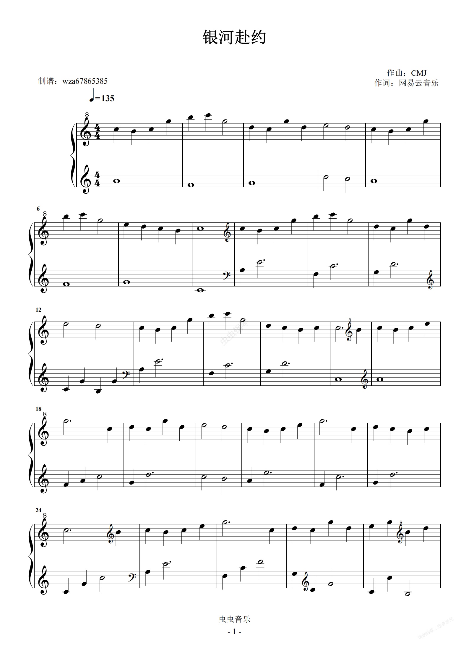 钢琴谱:银河赴约