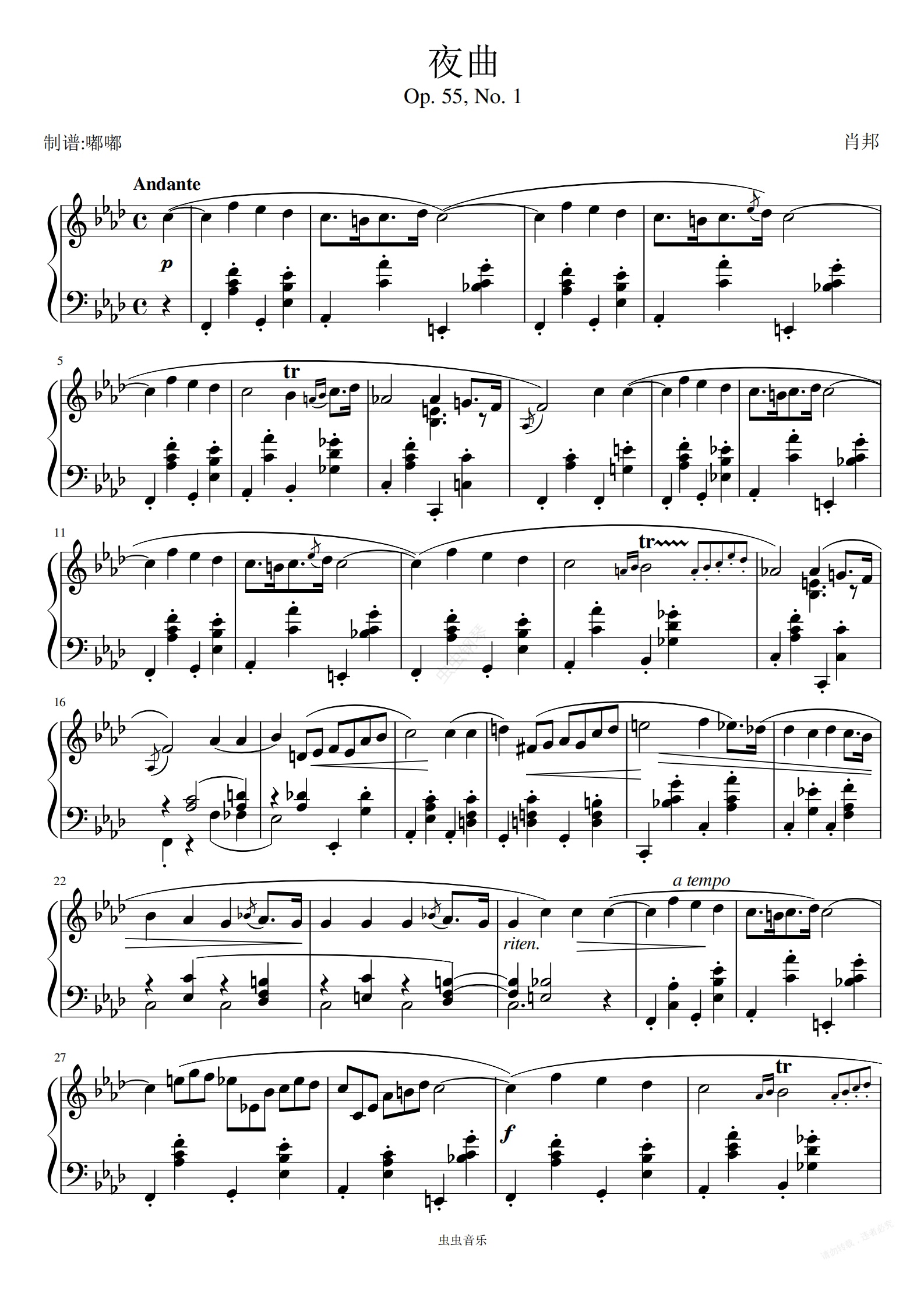 钢琴谱:肖邦《夜曲》——Op. 55, No. 1
