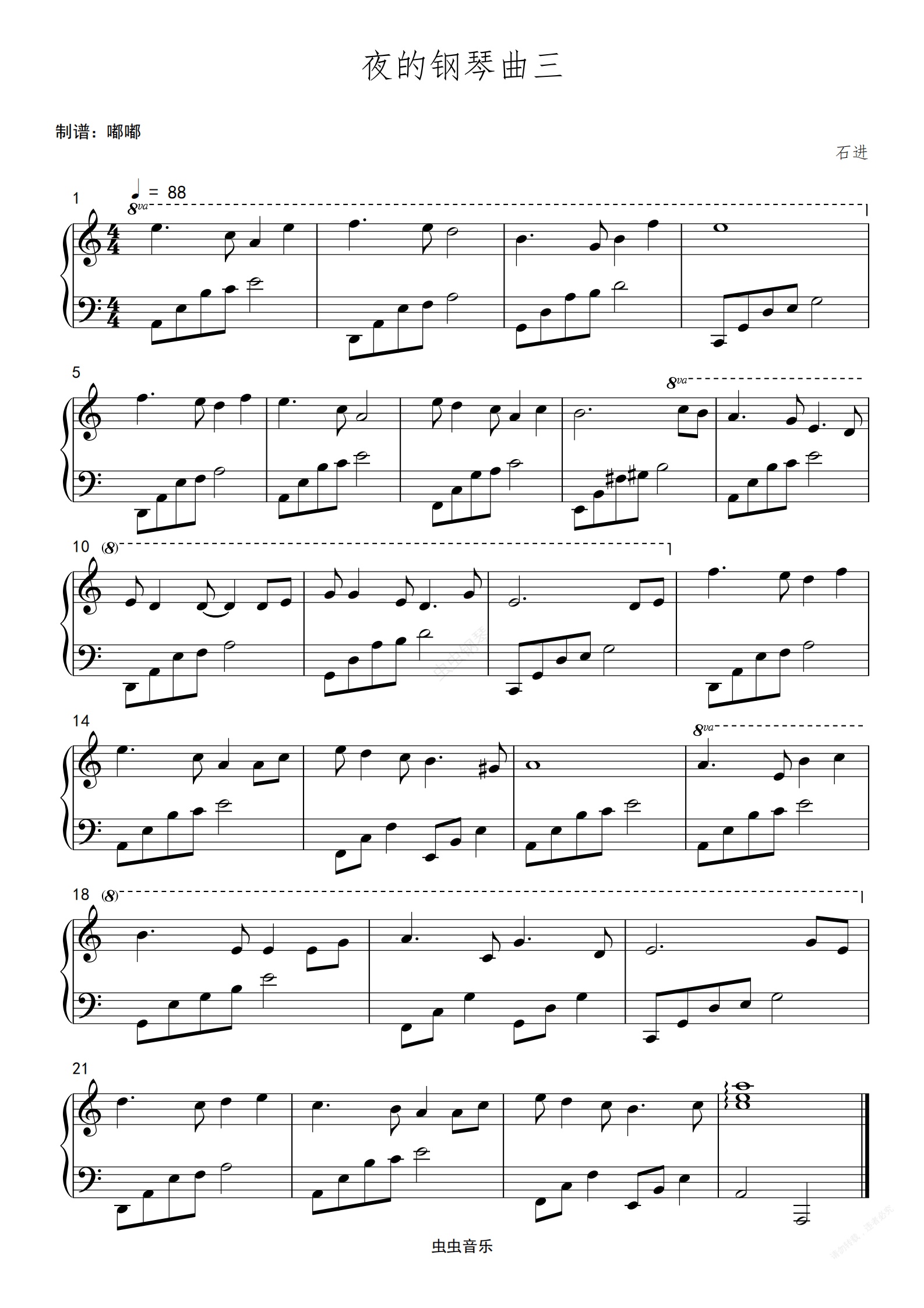 钢琴谱:夜的钢琴曲三(简单教学版)C调