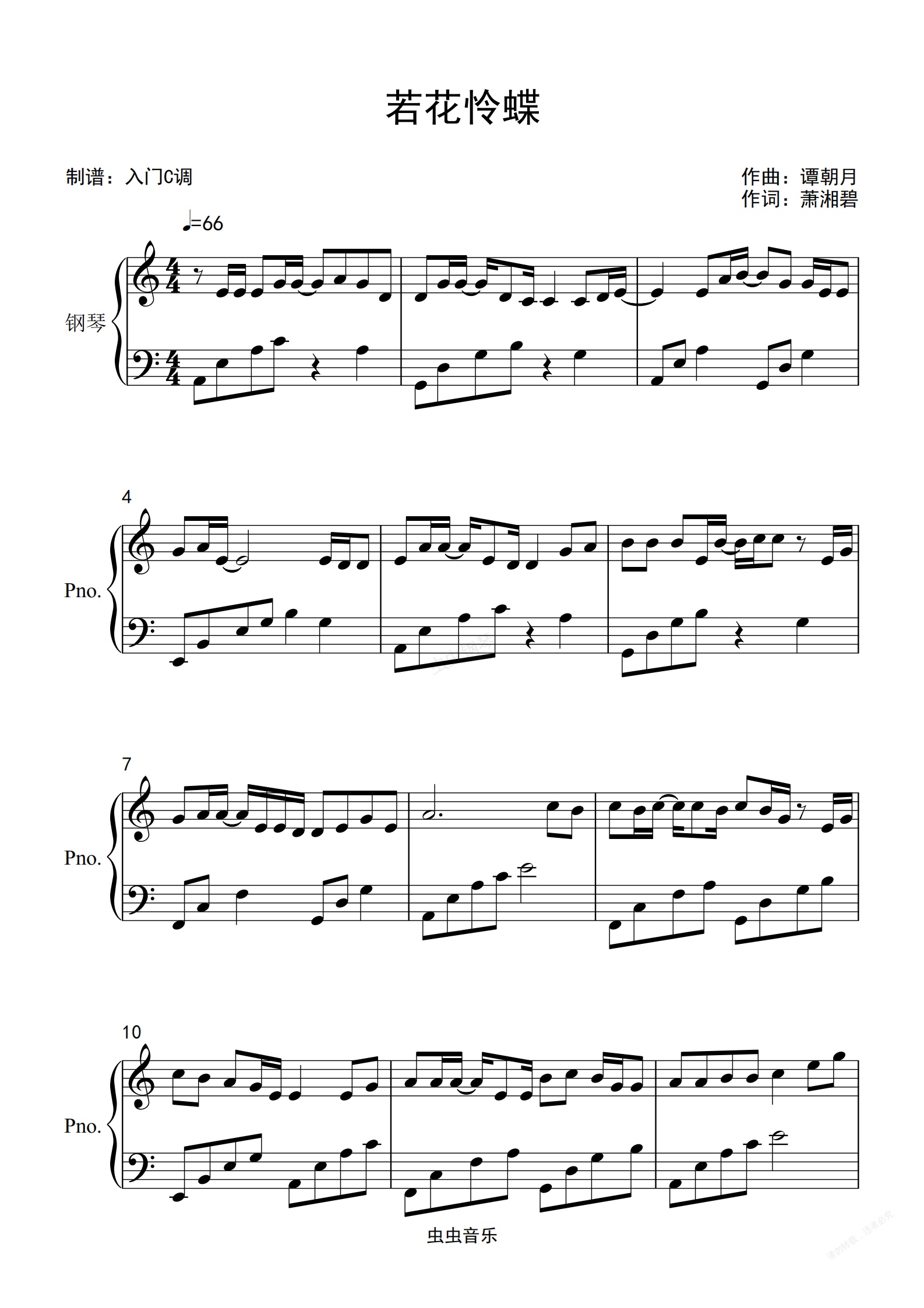 钢琴谱:萧忆情Alex《若花怜蝶》C调简单版