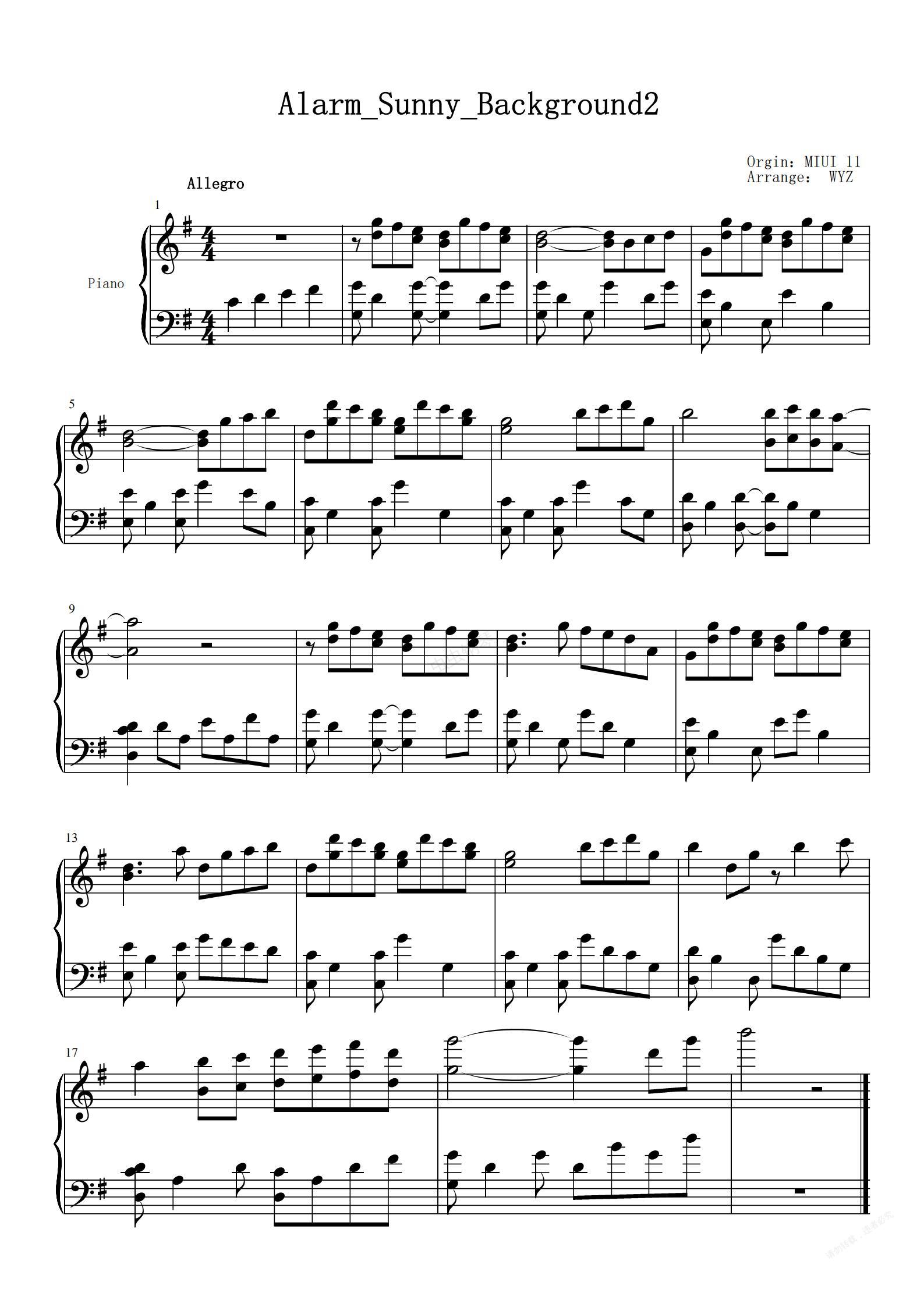 钢琴谱:MIUI 11 起床铃声【晴天2】