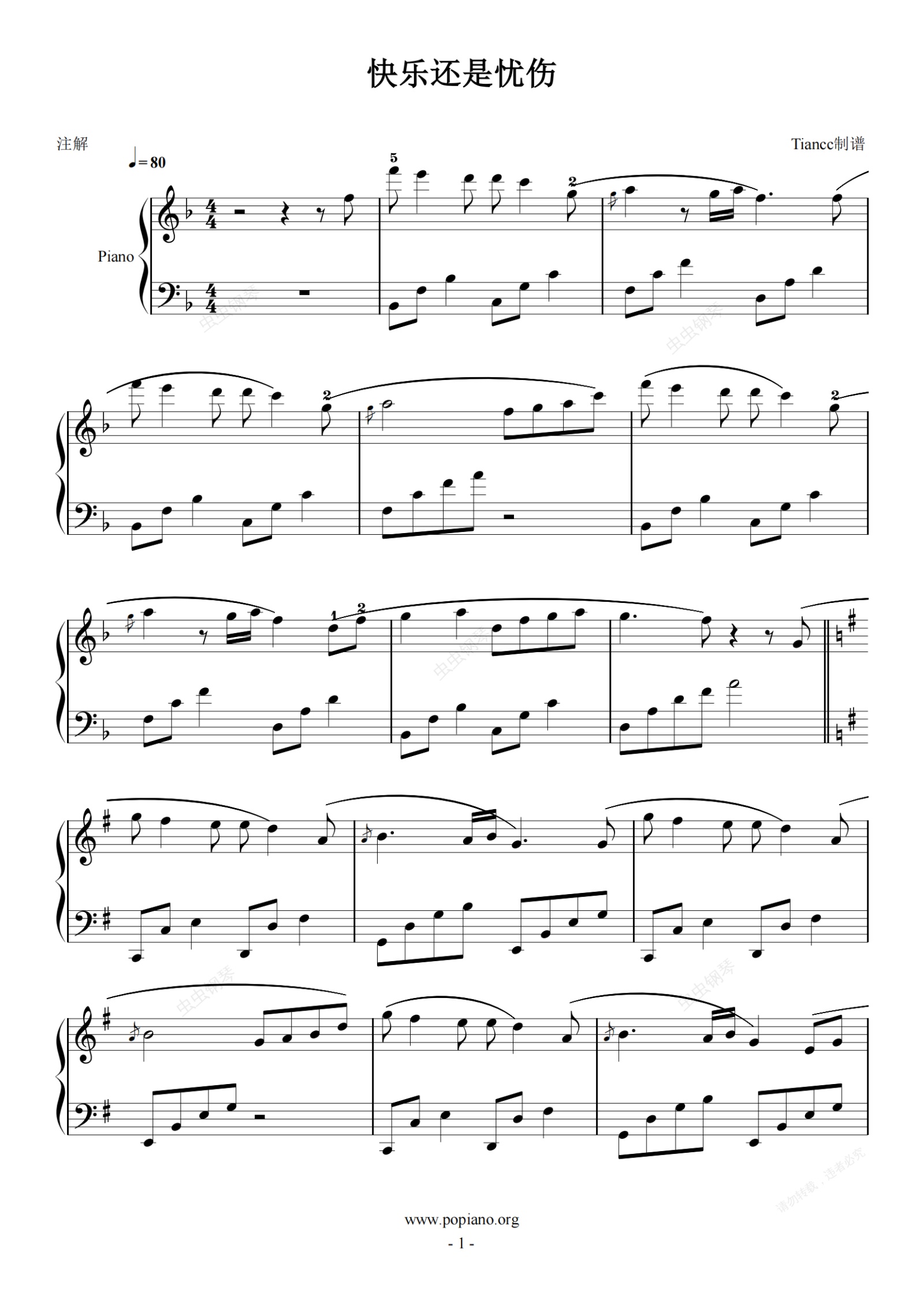 钢琴谱:《快乐还是忧伤》My Soul,拜厄难度,简单易上手~