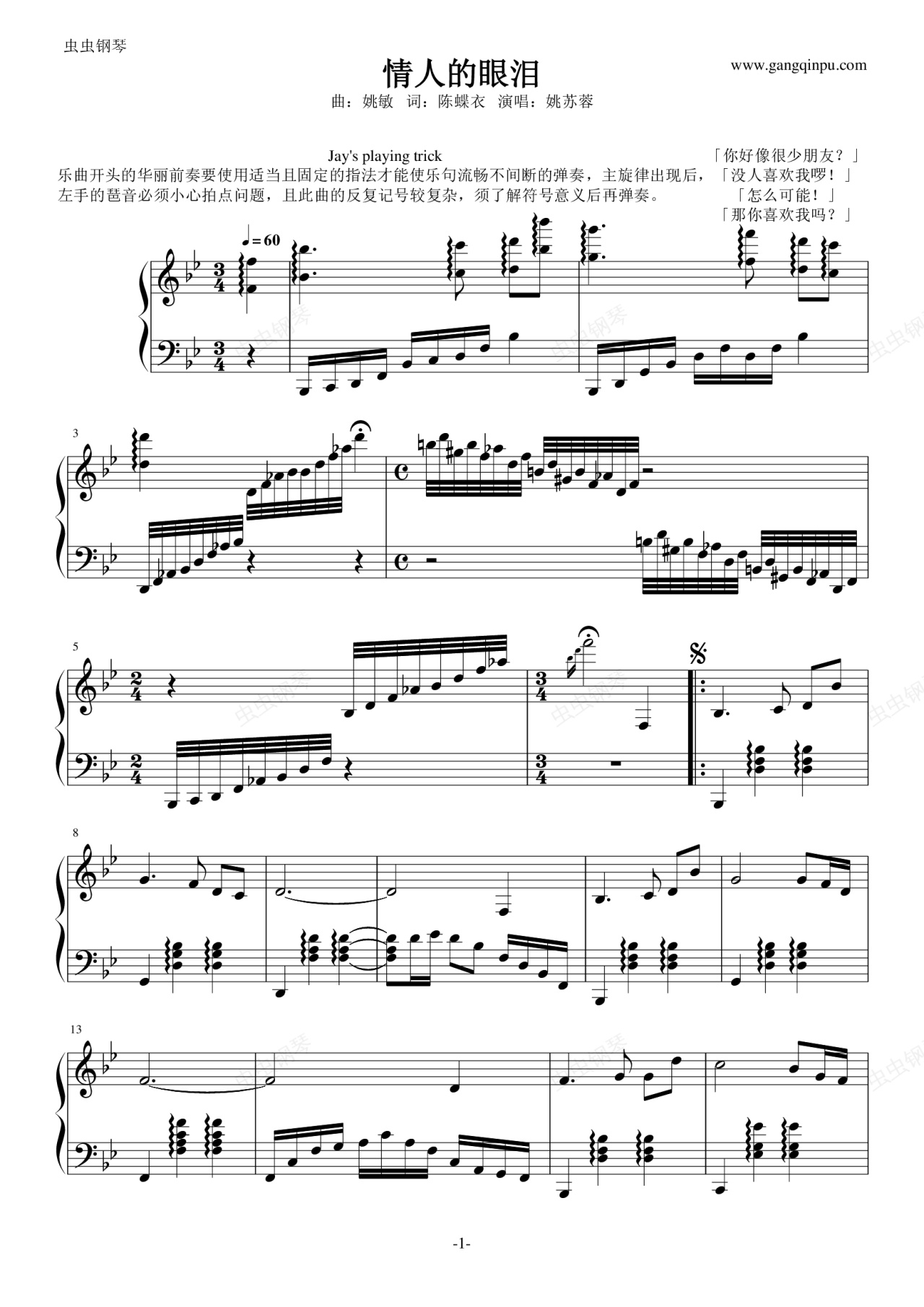 钢琴谱:不能说的秘密之《情人的眼泪》