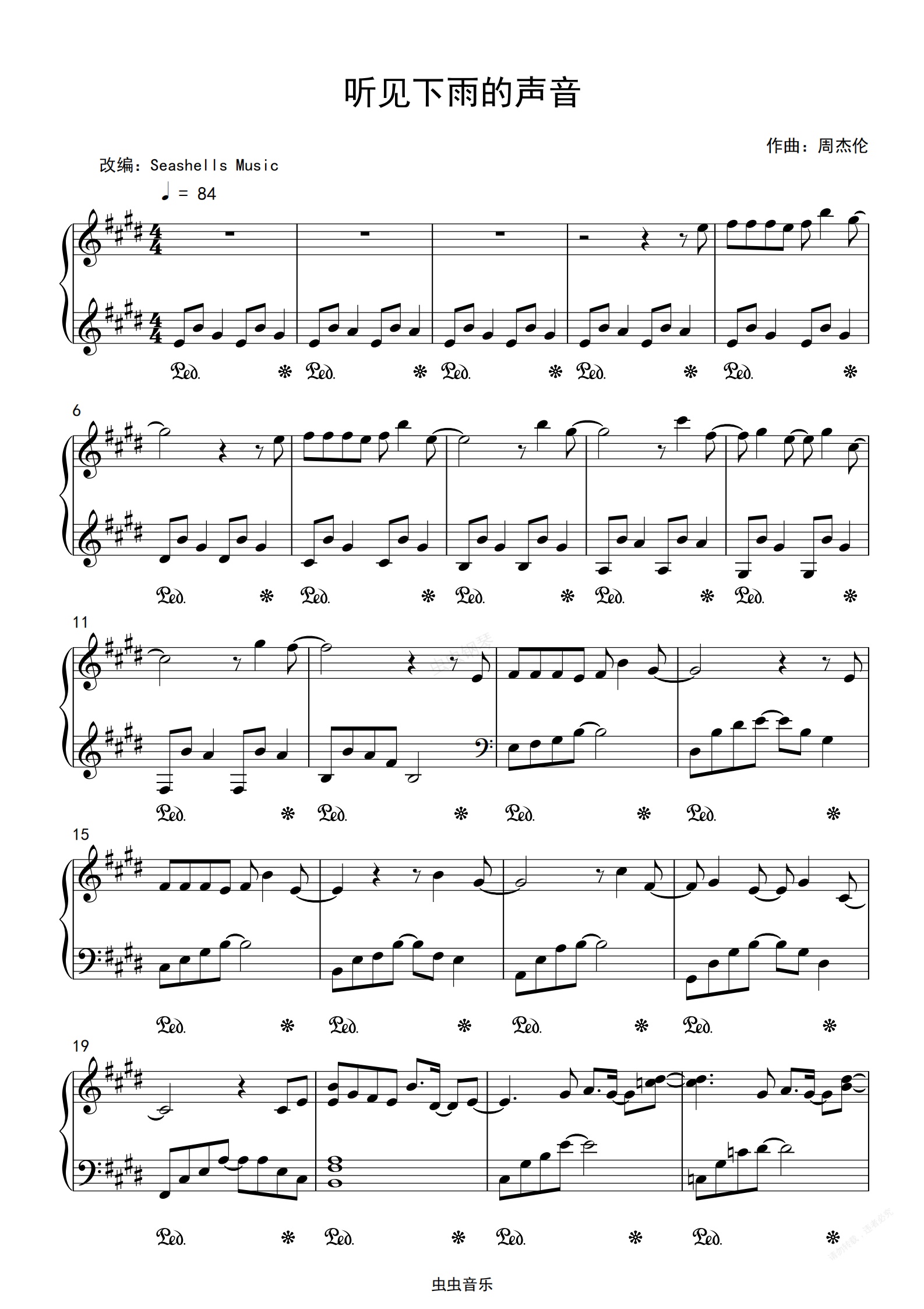 钢琴谱:周杰伦-《听见下雨的声音》精编钢琴独奏
