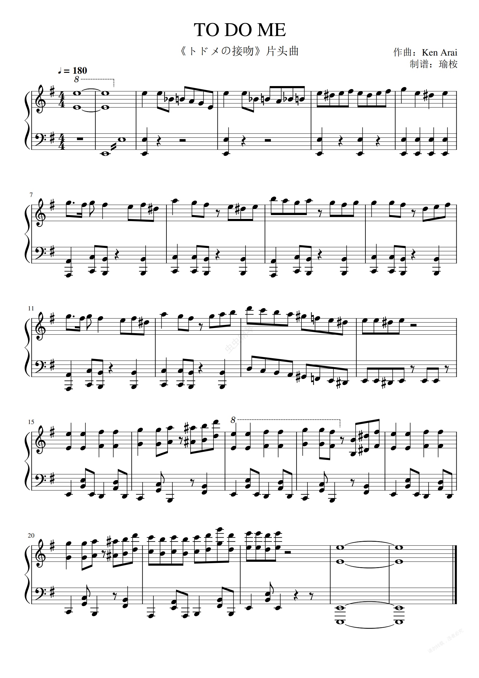 钢琴谱:TO DO ME(《トドメの接吻》片头曲)