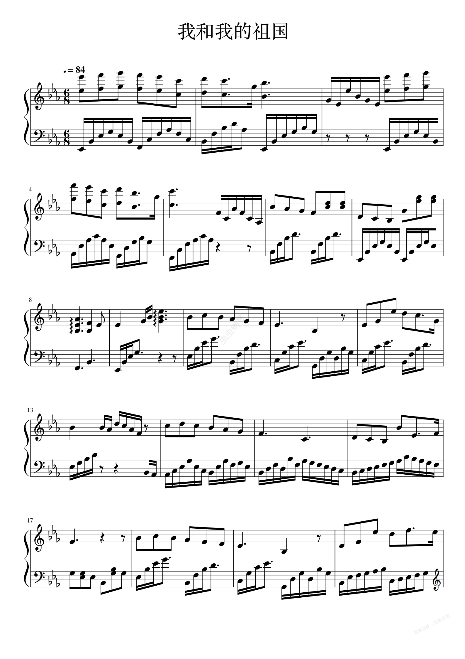 钢琴谱:我和我的祖国(原调)