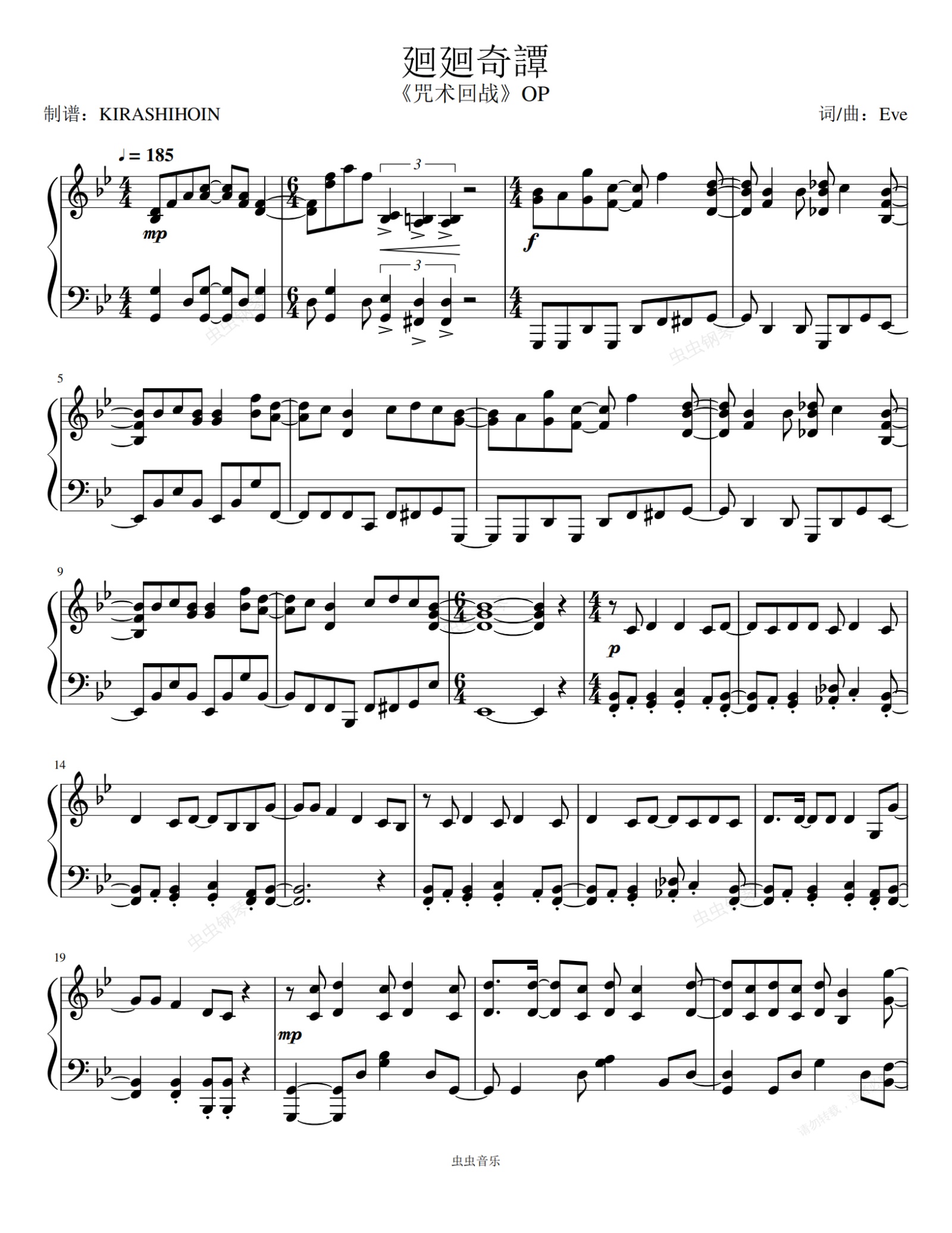 钢琴谱:廻廻奇譚 (《咒术回战》OP)