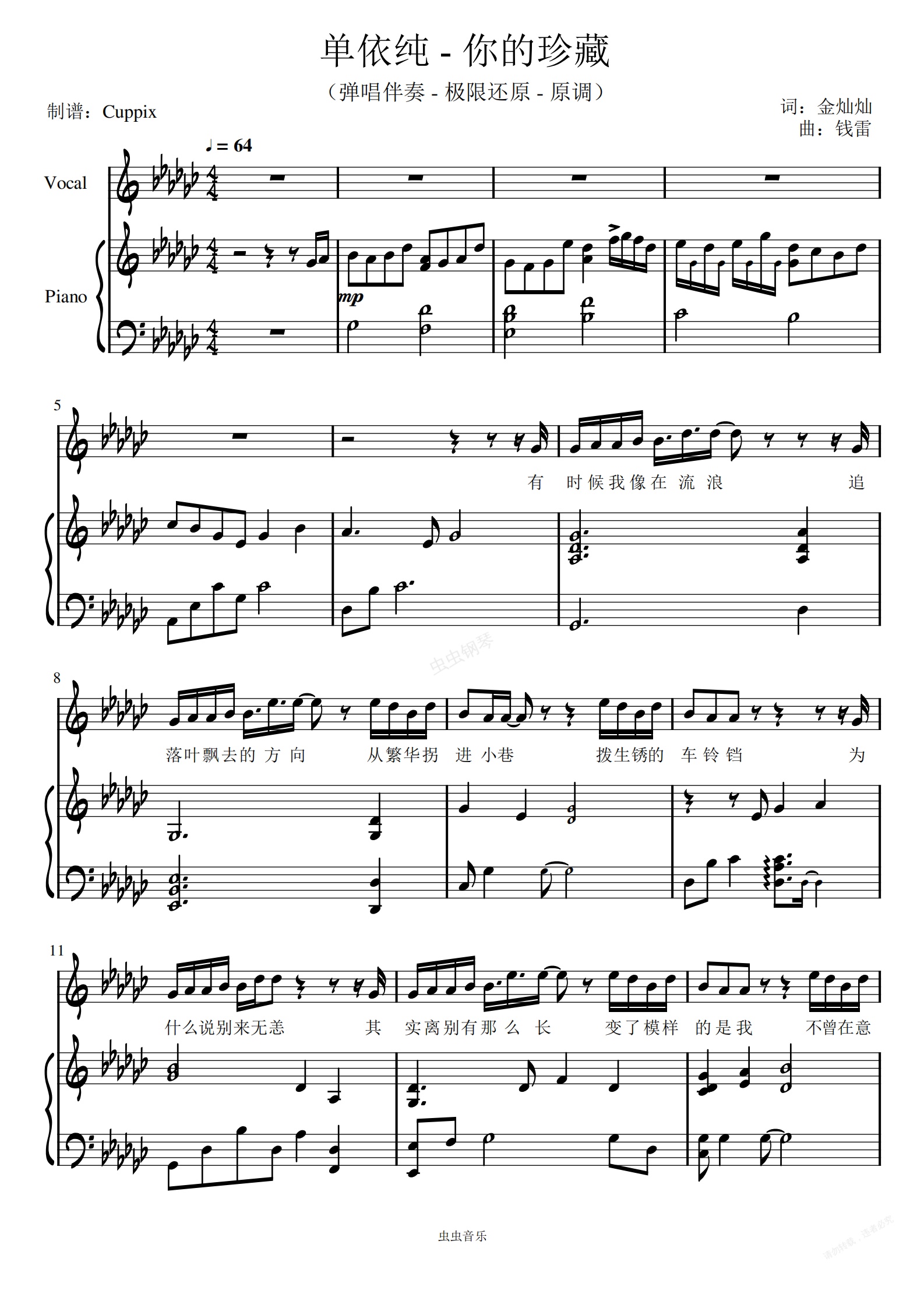 《你的珍藏》弹唱伴奏附词-原调-极限还原(单依纯)