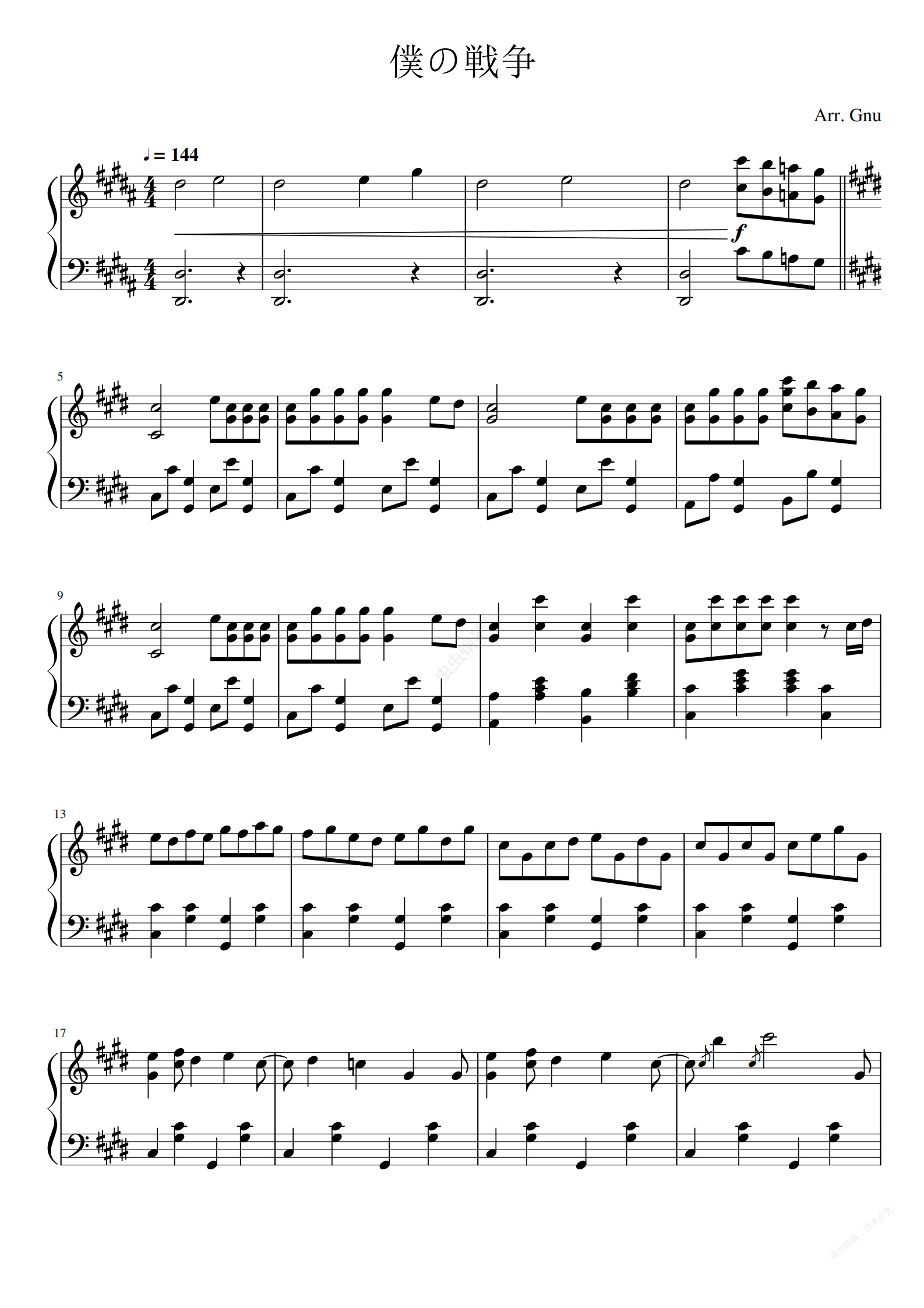 钢琴谱:【进击的巨人最终季OP】僕の戦争
