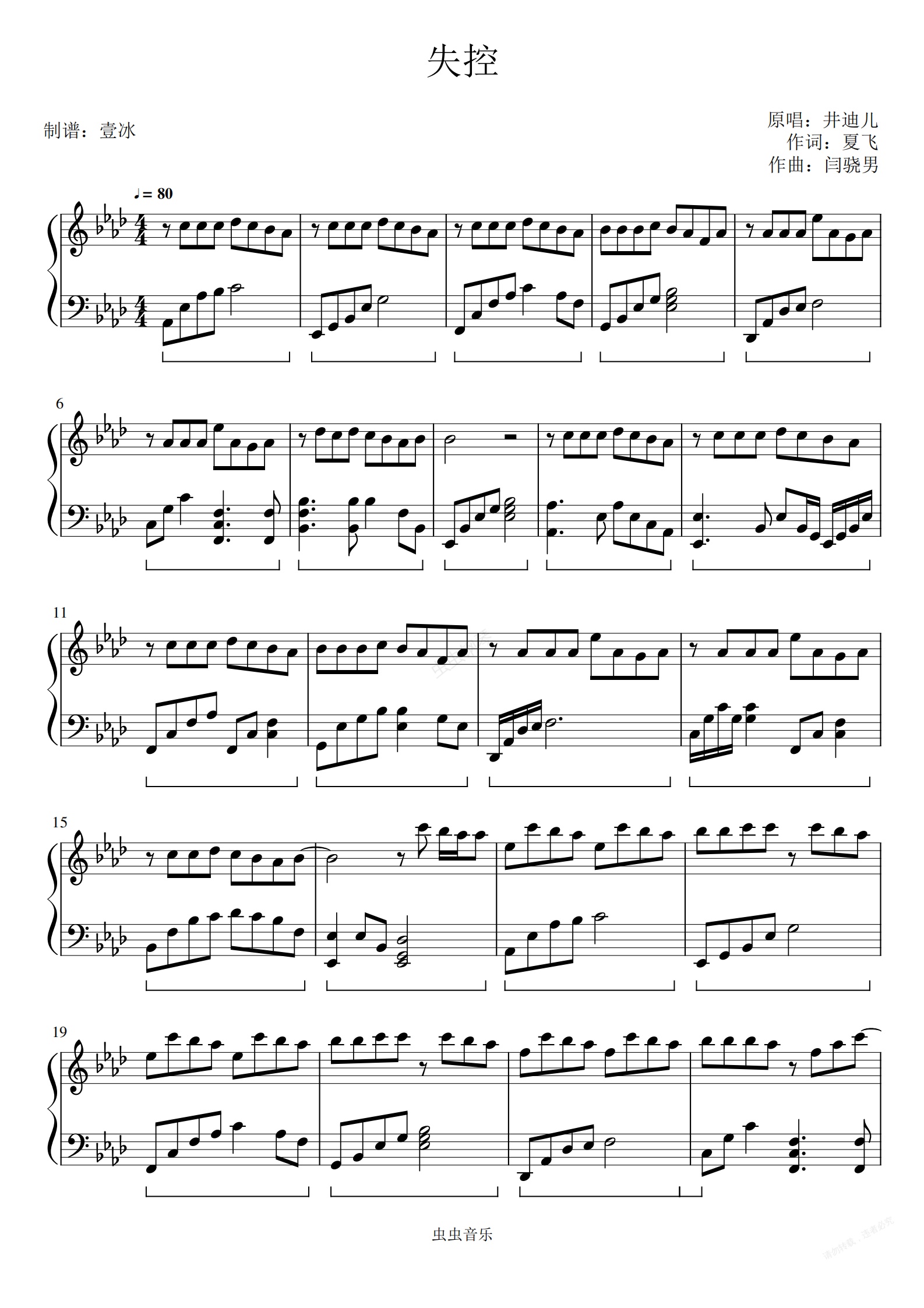 钢琴谱:失控//井迪儿-壹冰钢琴版