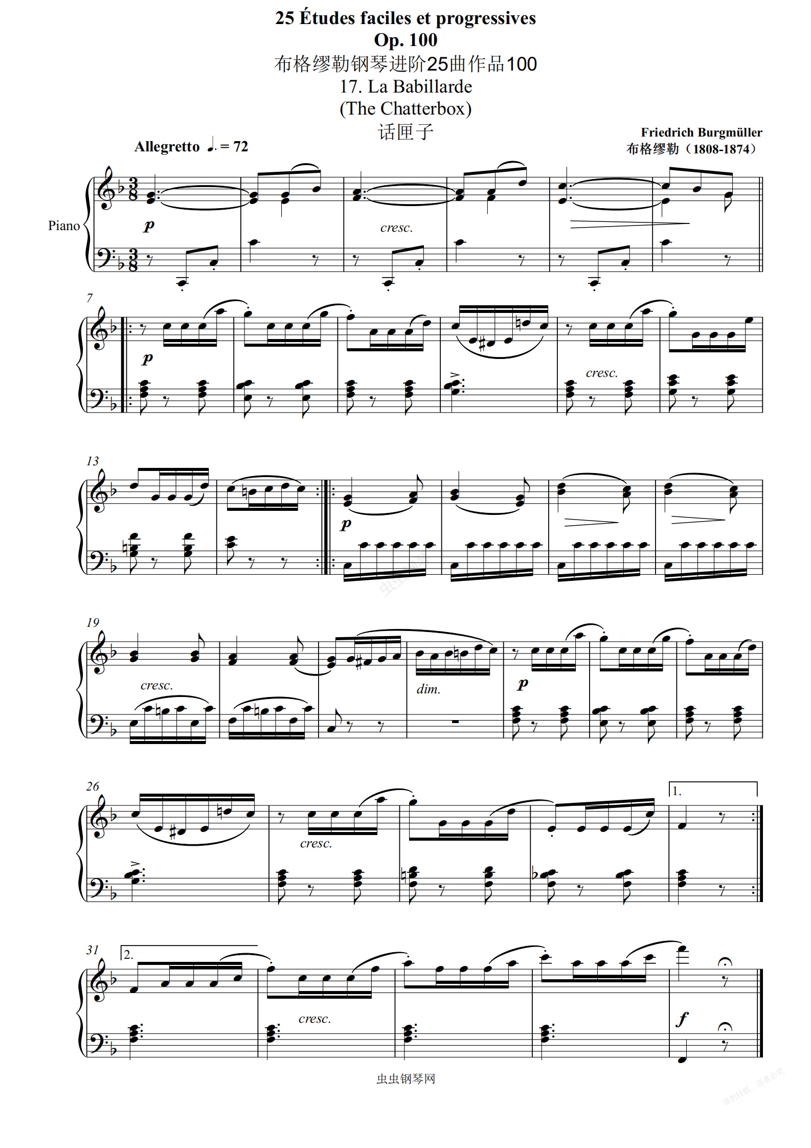 钢琴谱:【初学者】第17首 话匣子-布格缪勒25首钢琴进阶练习曲 Op. 100