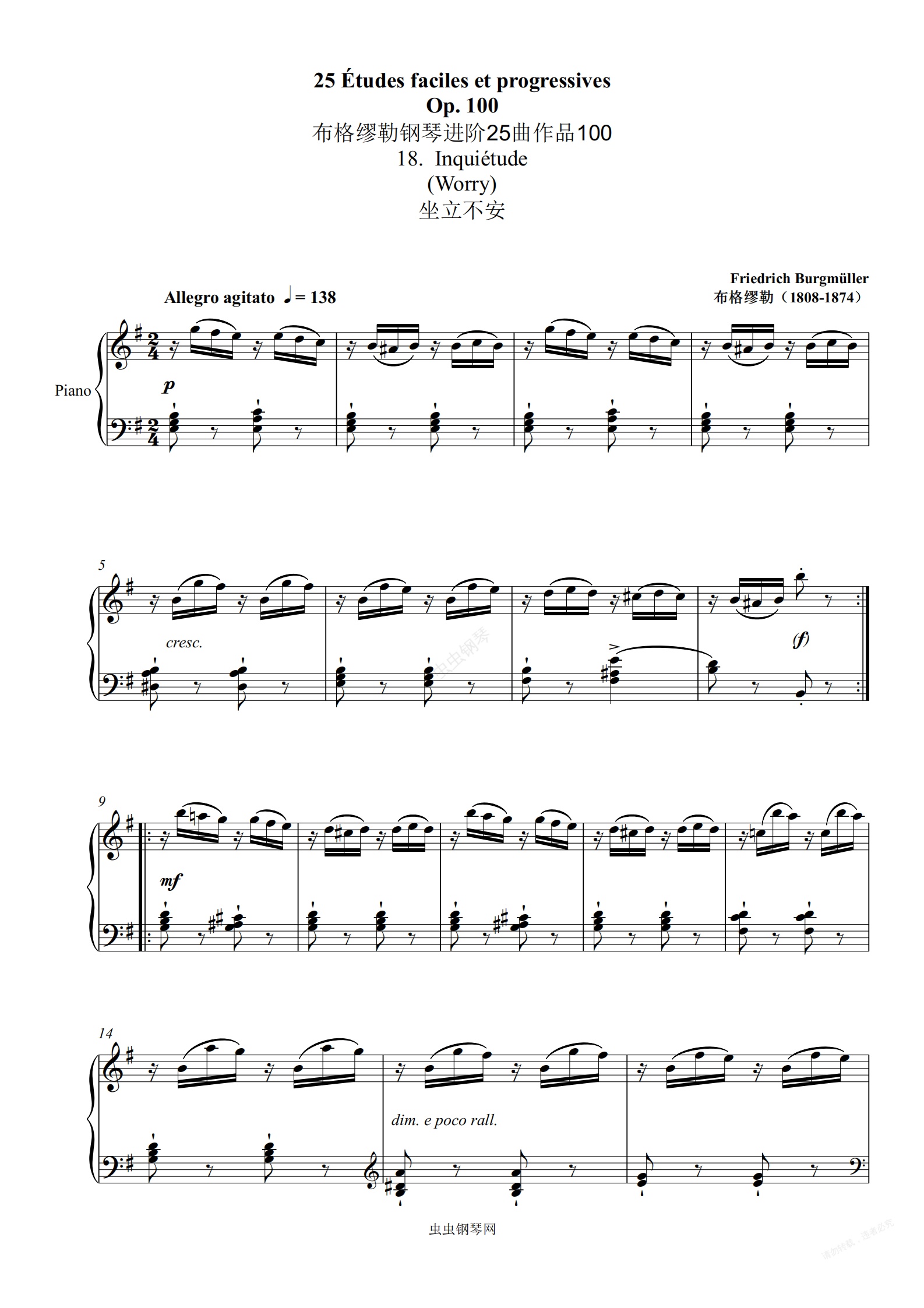 钢琴谱:【初学者】第18首 坐立不安-布格缪勒25首钢琴进阶练习曲 Op. 100