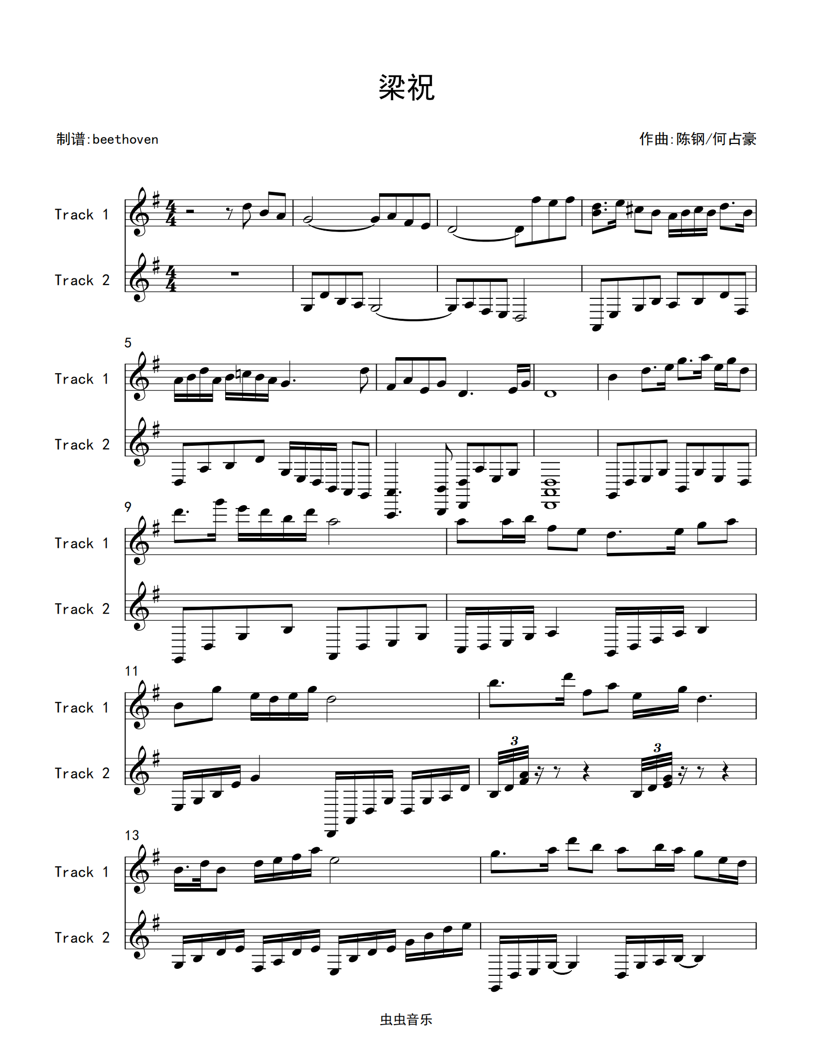 钢琴谱:梁祝(钢琴曲独奏完整版)