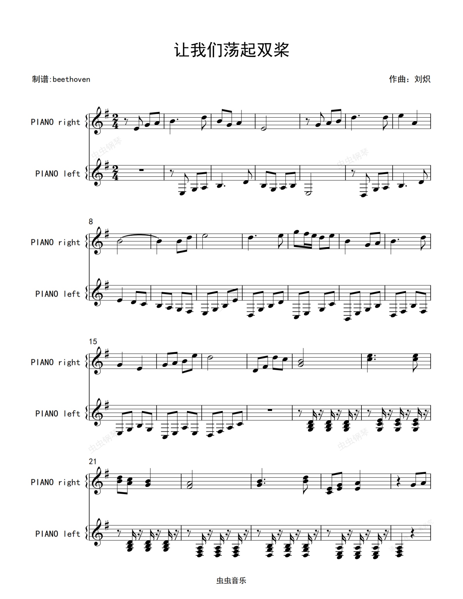 钢琴谱:让我们荡起双桨(钢琴独奏完整版)