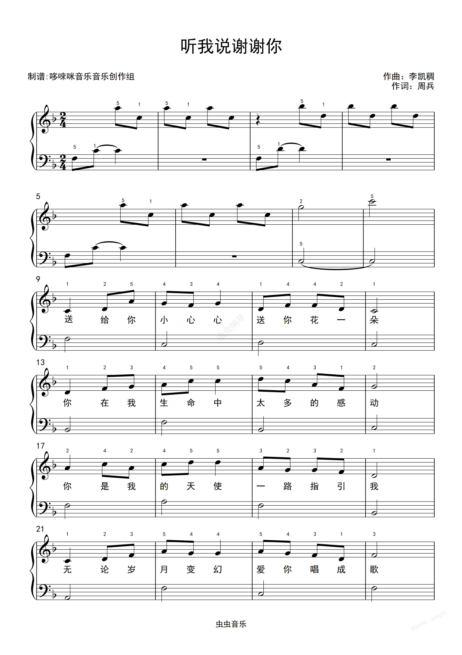 钢琴谱:听我说谢谢你 简易版 汤III程度