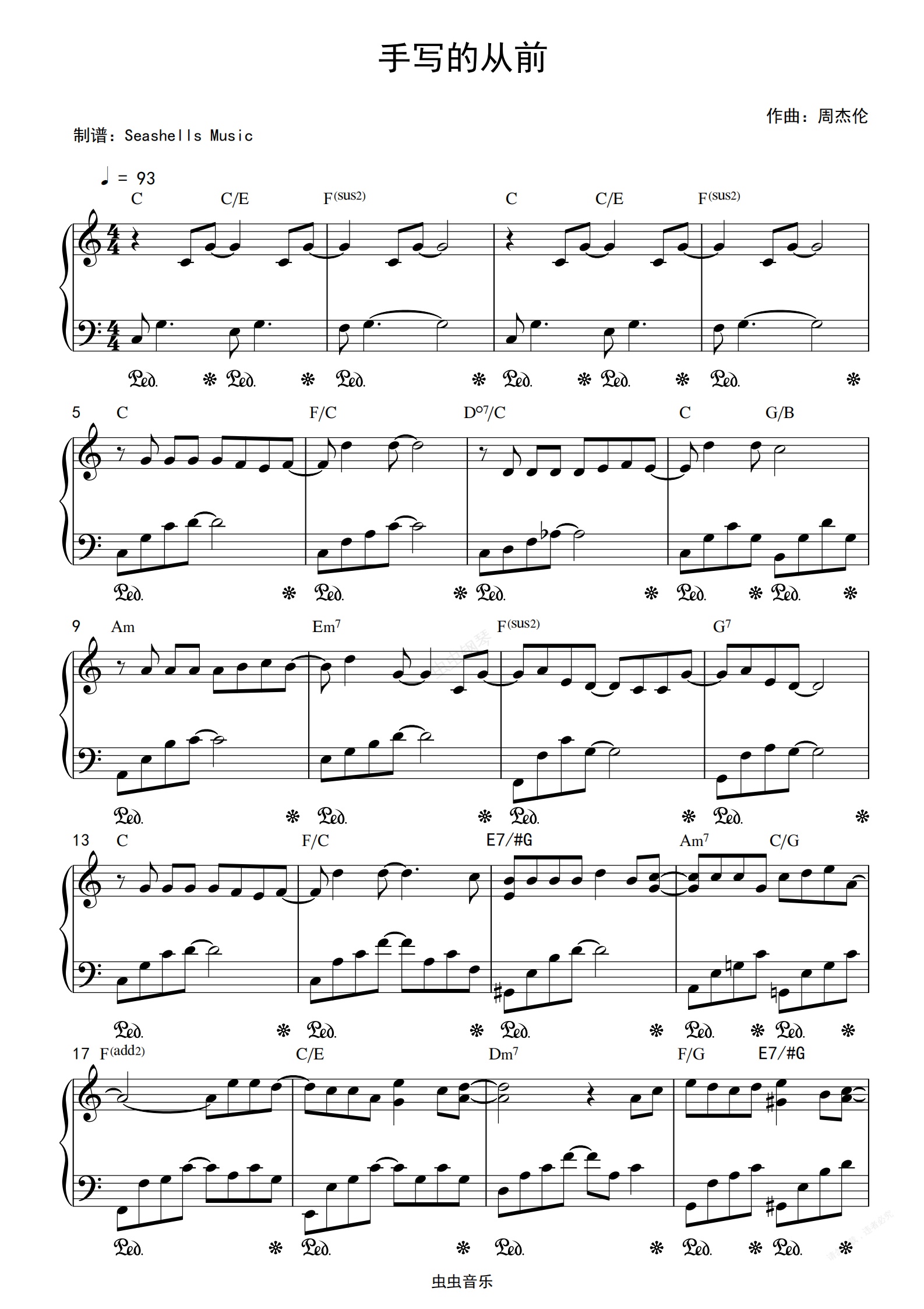 钢琴谱:周杰伦-《手写的从前》精编钢琴独奏