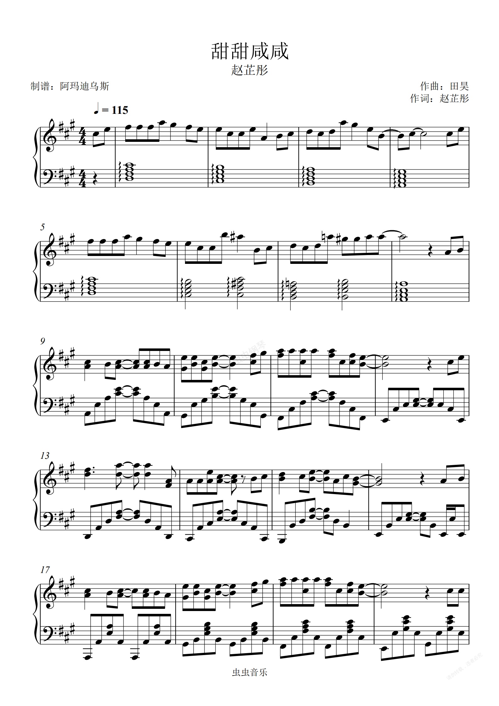 钢琴谱:赵芷彤 <甜甜咸咸> 原调高还原版本