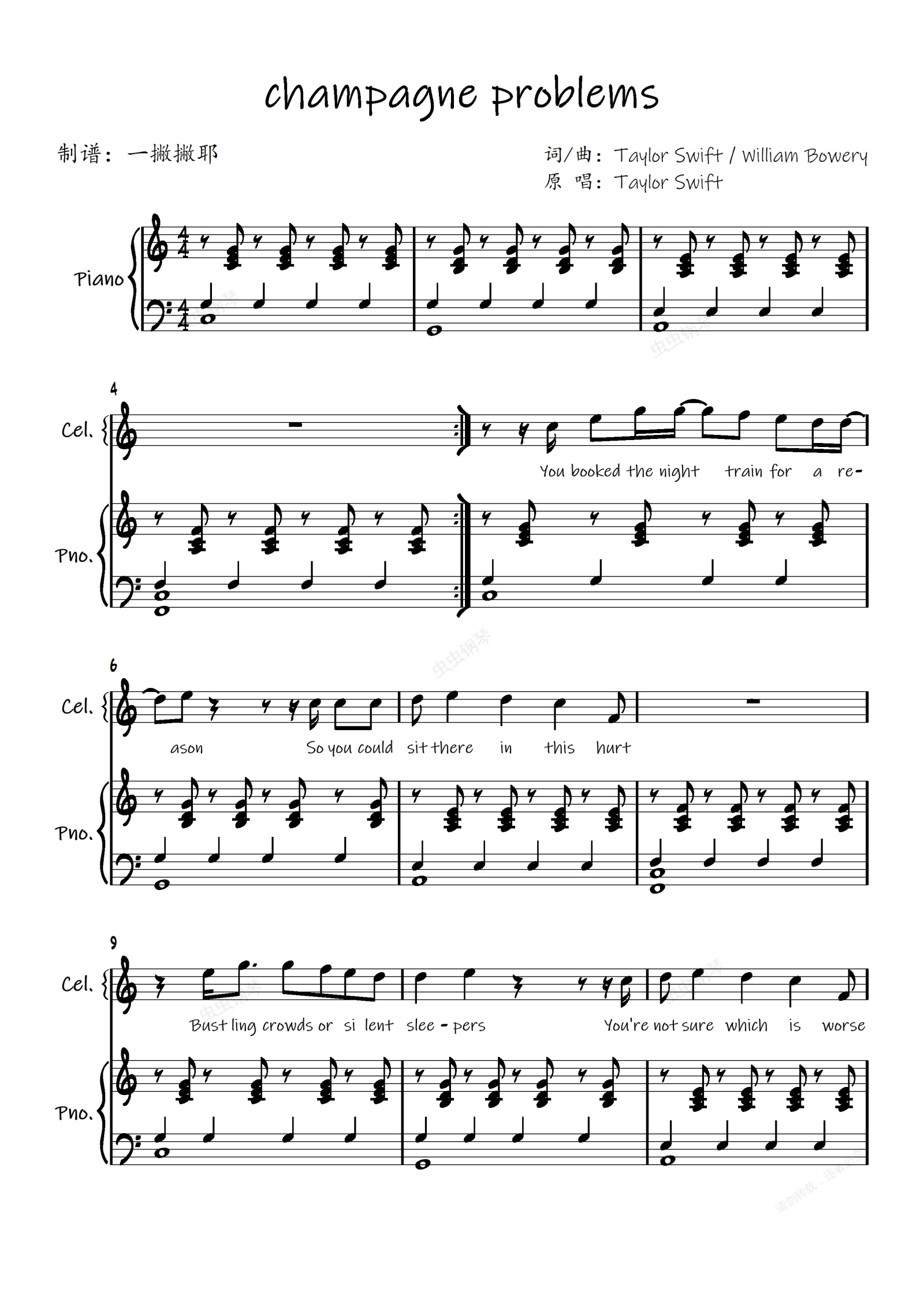 钢琴谱:champagne problems【弹唱谱】Taylor Swift泰勒·斯威夫特∣霉霉evermore「一撇撇耶」