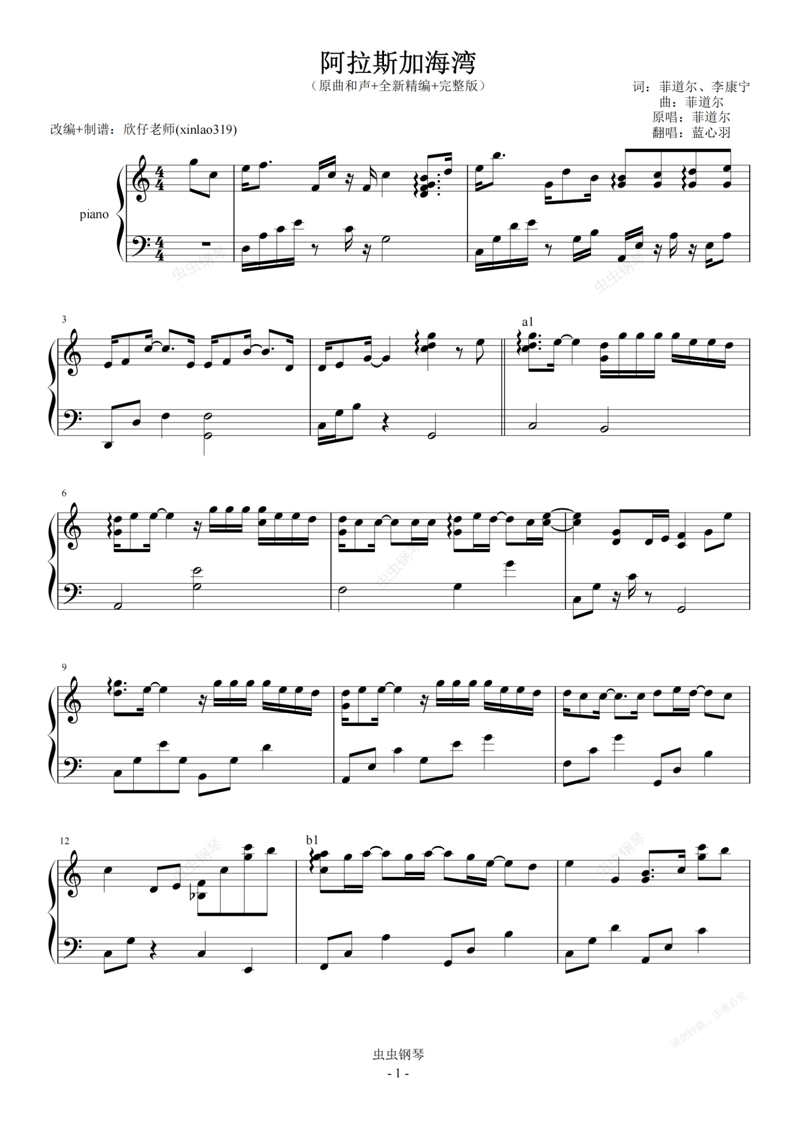 钢琴谱:阿拉斯加海湾-C(原曲和声+全新精编+完整版)