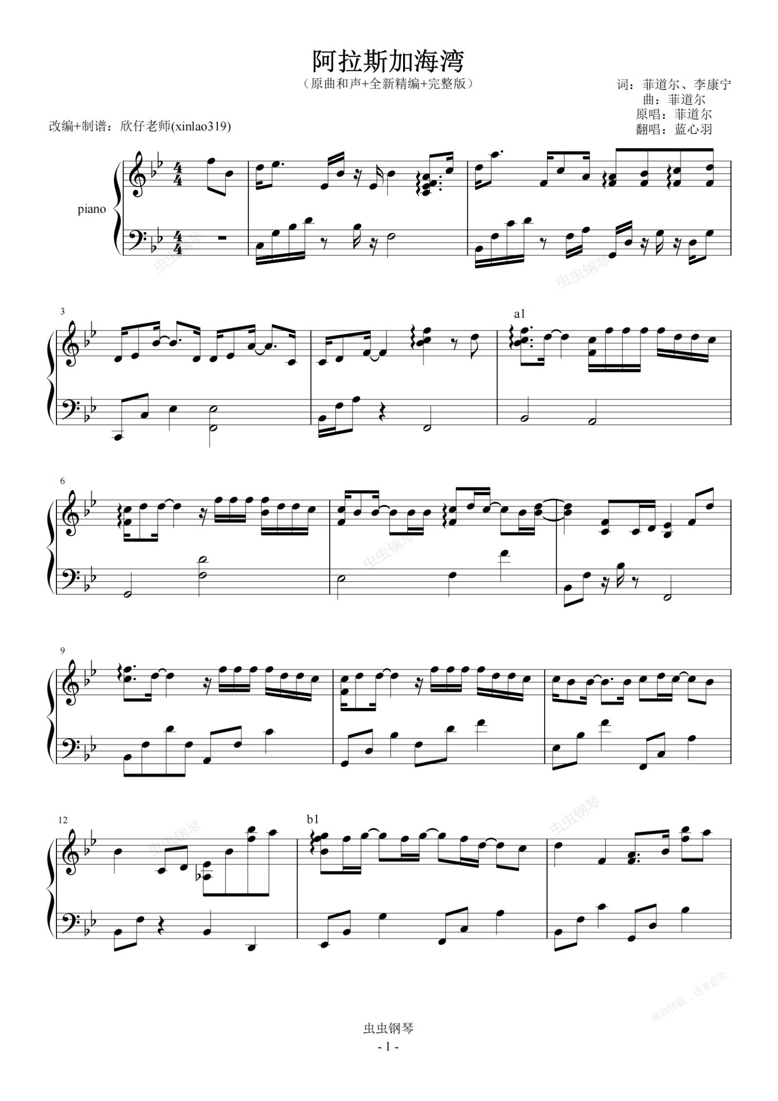钢琴谱:阿拉斯加海湾-降B(原曲和声+全新精编+完整版)