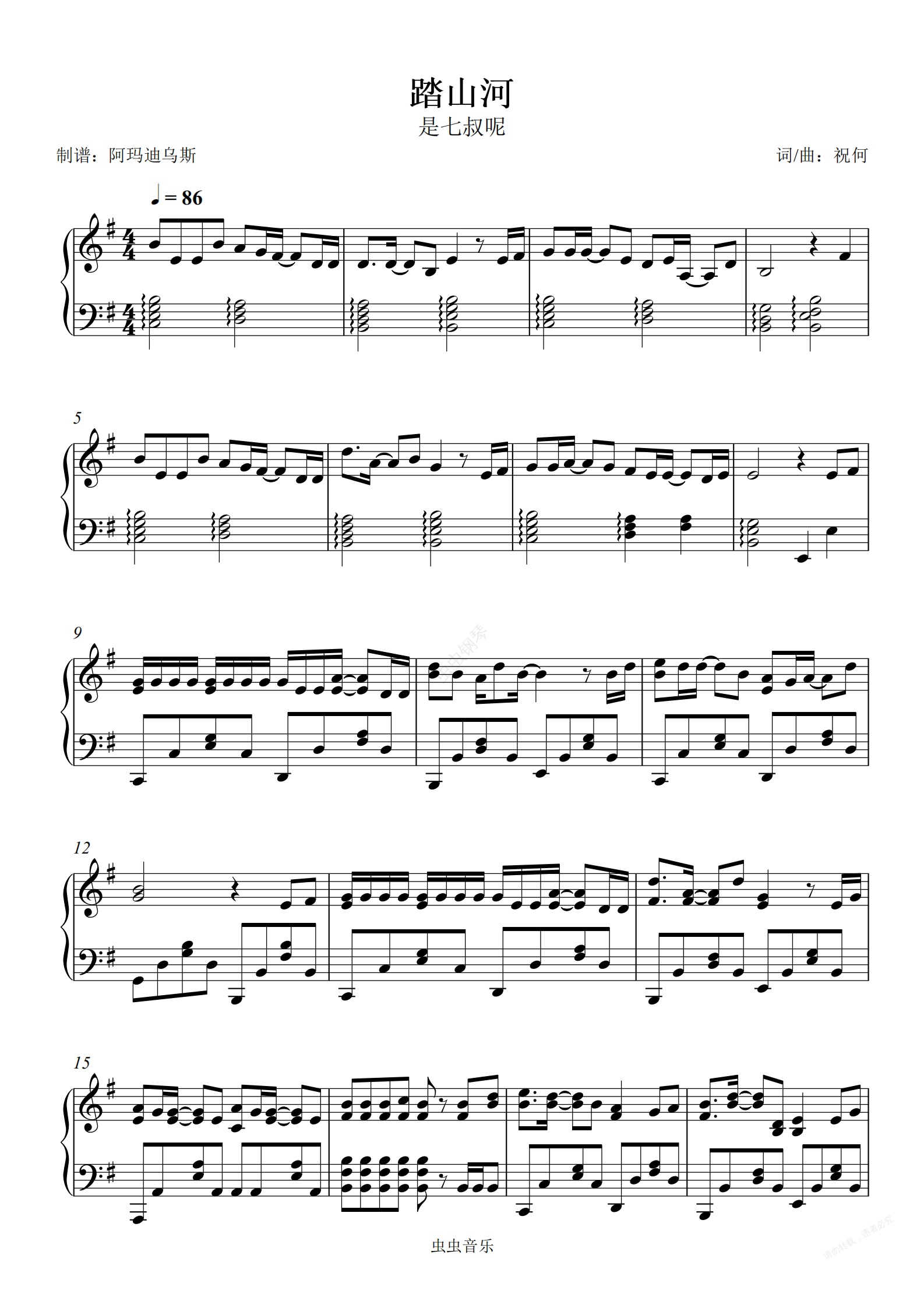 钢琴谱:是七叔呢 <踏山河> 原调高还原版本