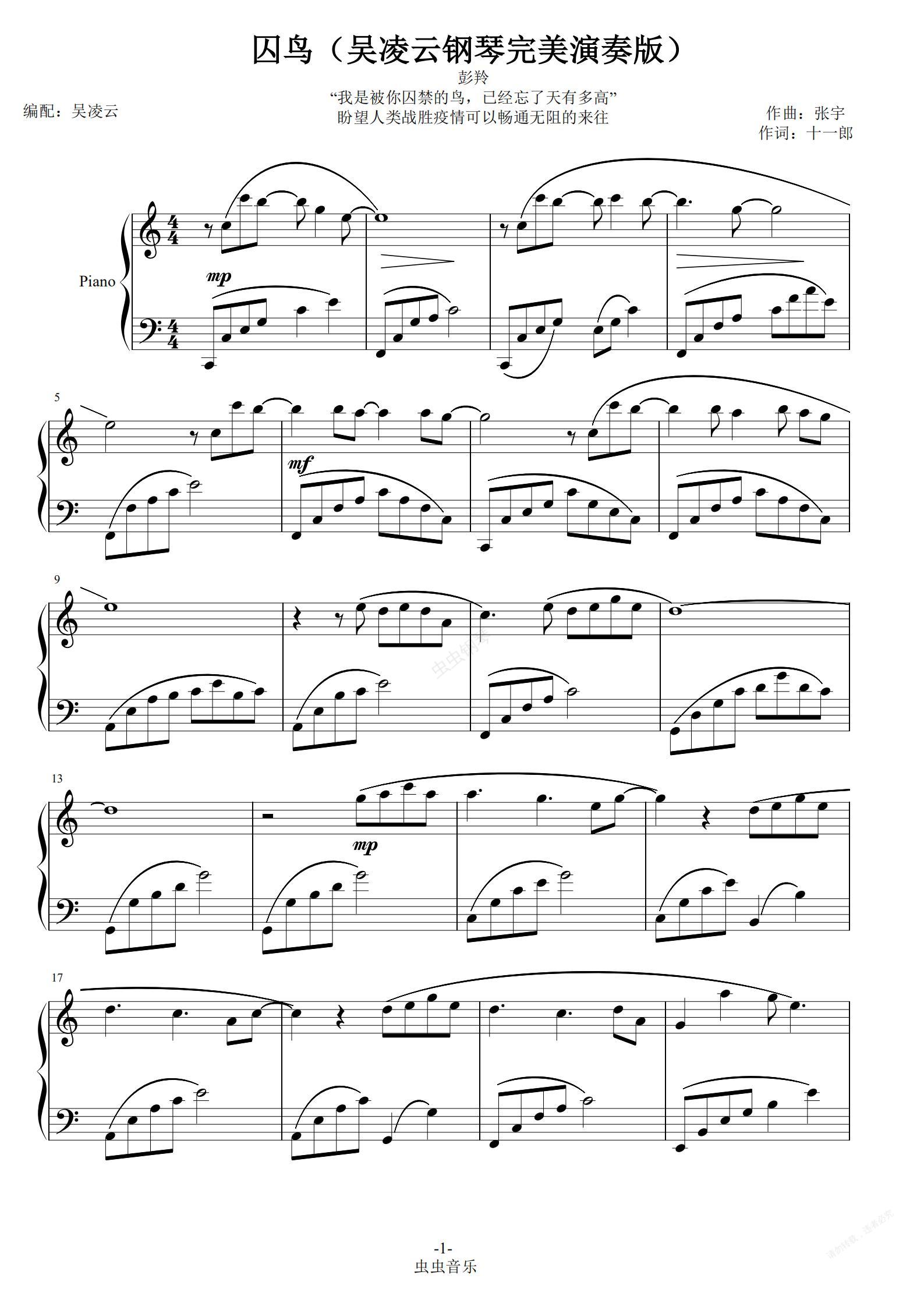 钢琴谱:囚鸟 彭羚 原版(吴凌云钢琴完美演奏版)