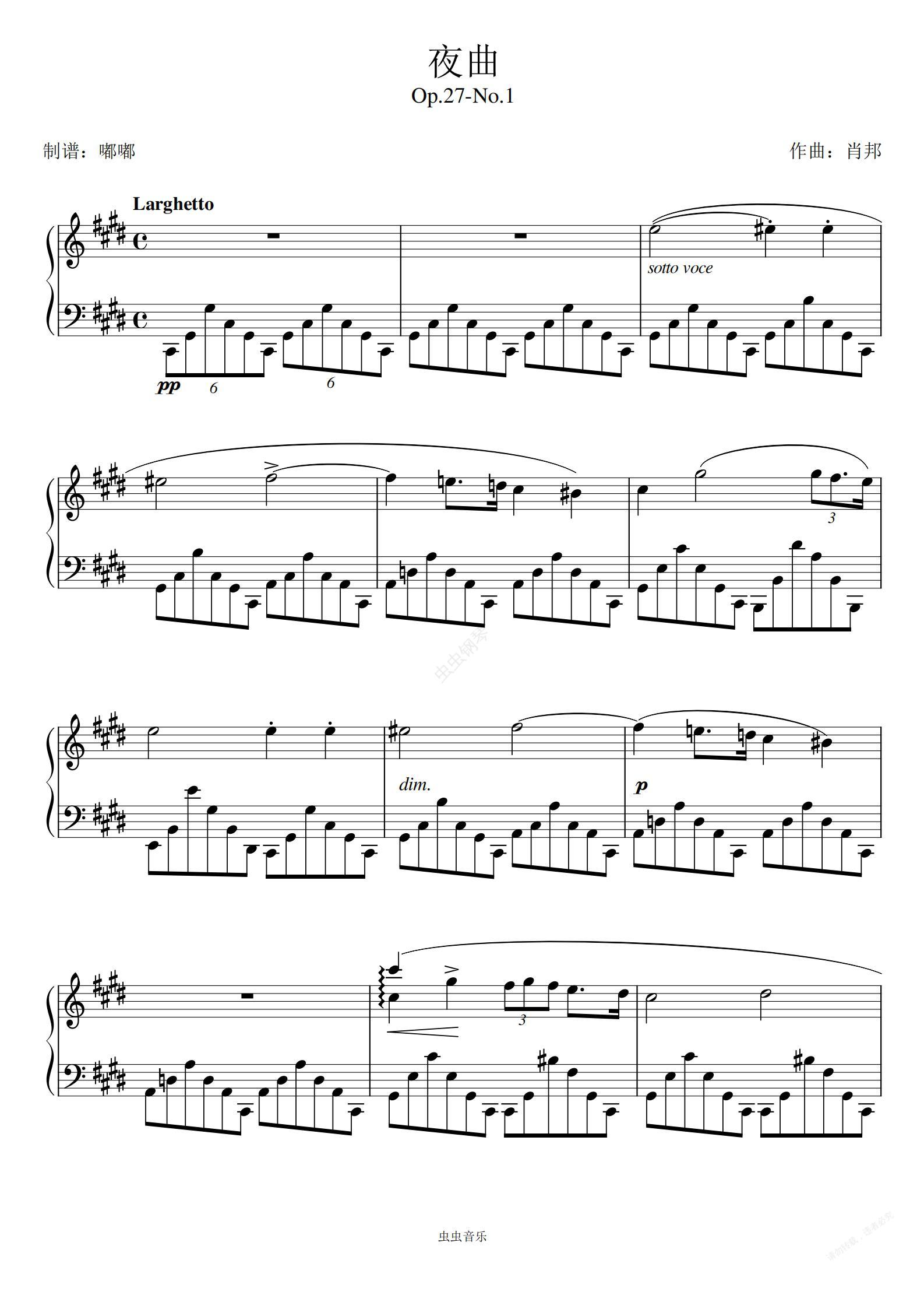 钢琴谱:肖邦《夜曲》——Op.27-No.1