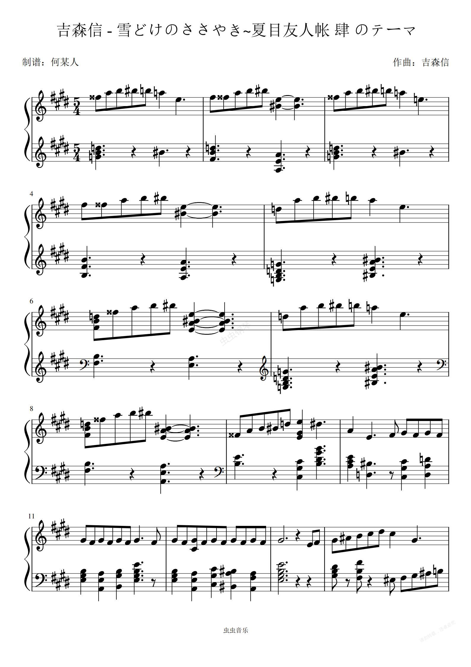 钢琴谱:吉森信 - 雪どけのささやき~夏目友人帐 肆 のテーマ