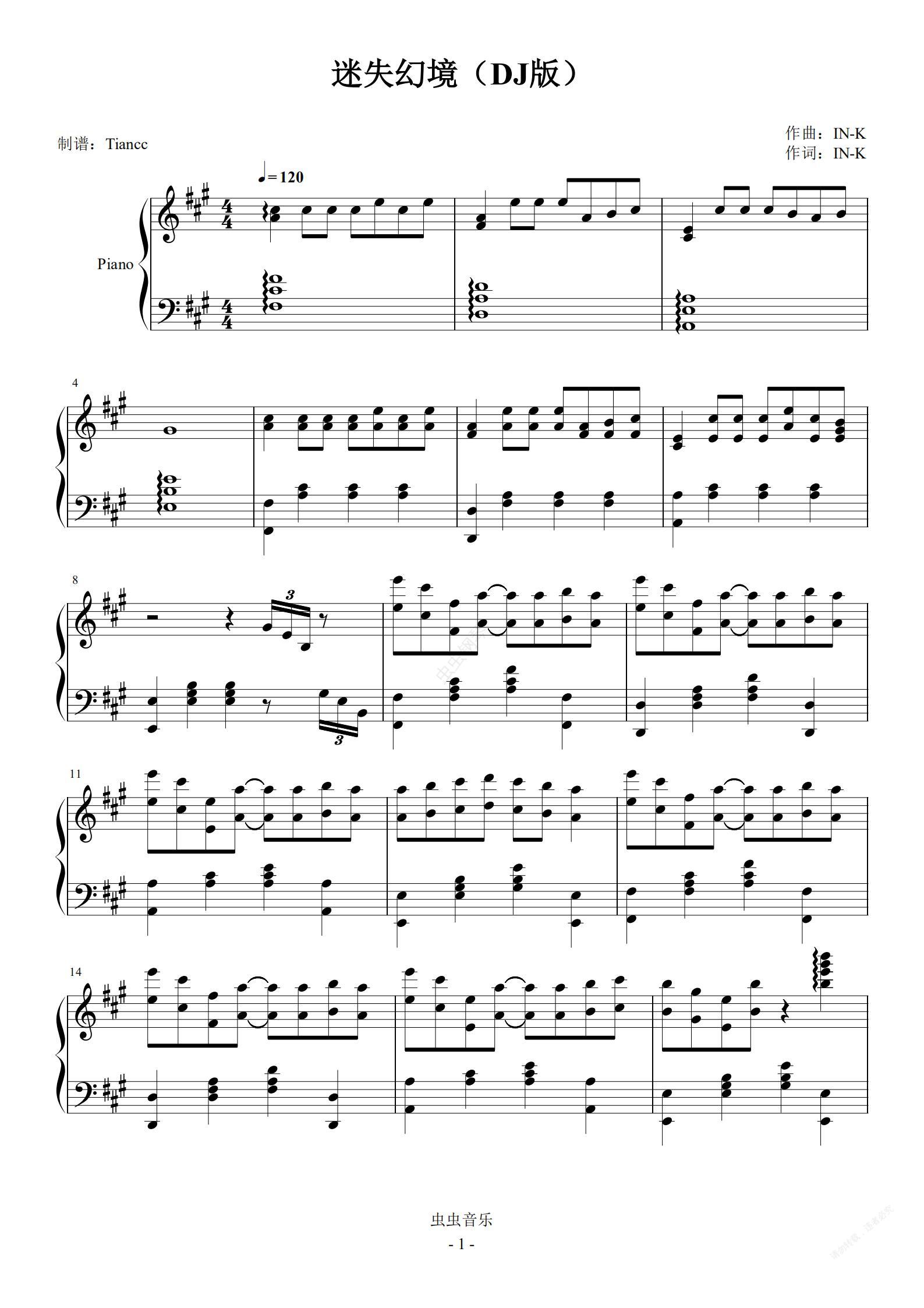 钢琴谱:《迷失幻境》(DJ版)完美可弹谱!加上架子鼓效果更好!