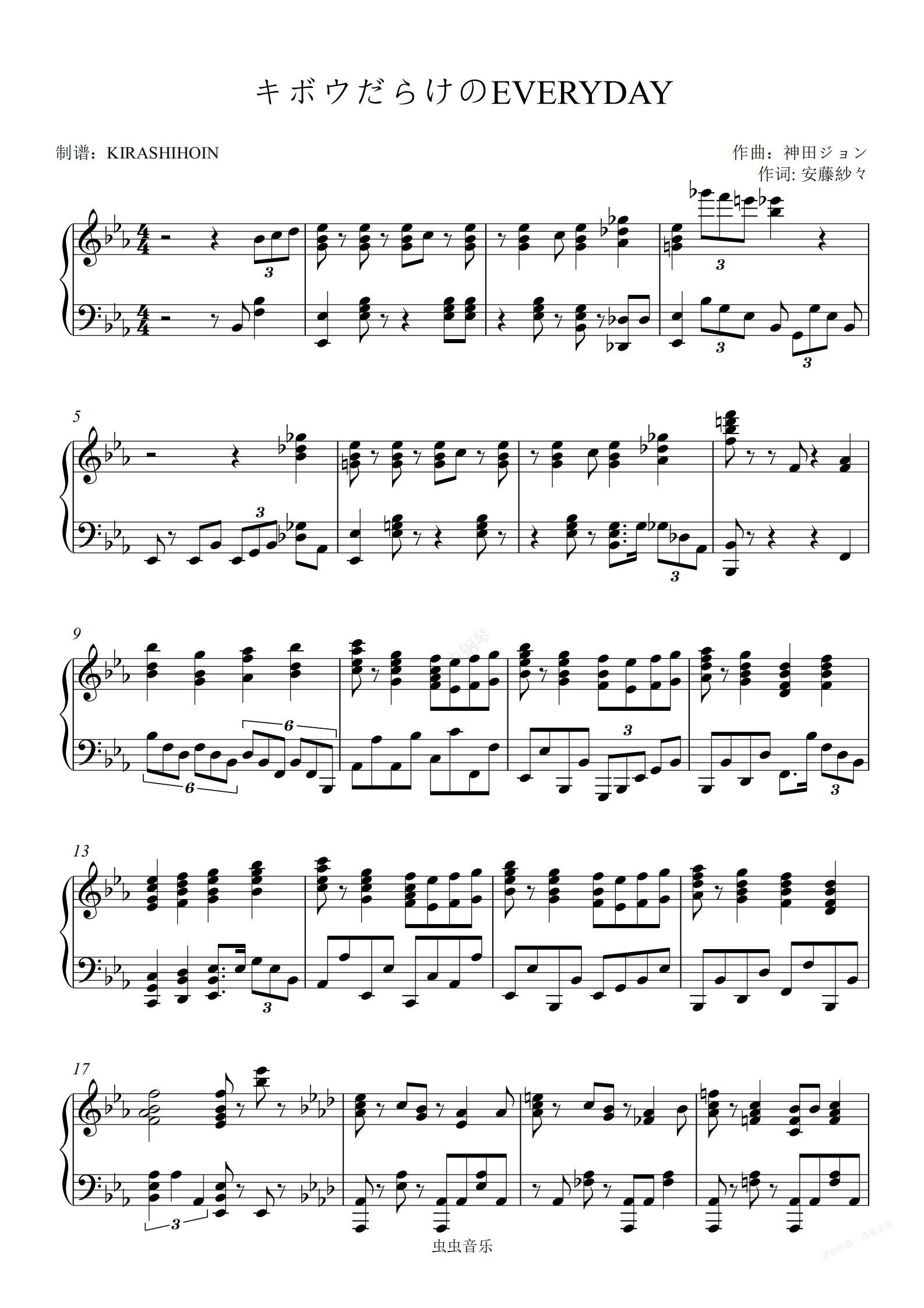 钢琴谱:キボウだらけのEVERYDAY(《满溢的水果挞》OP)