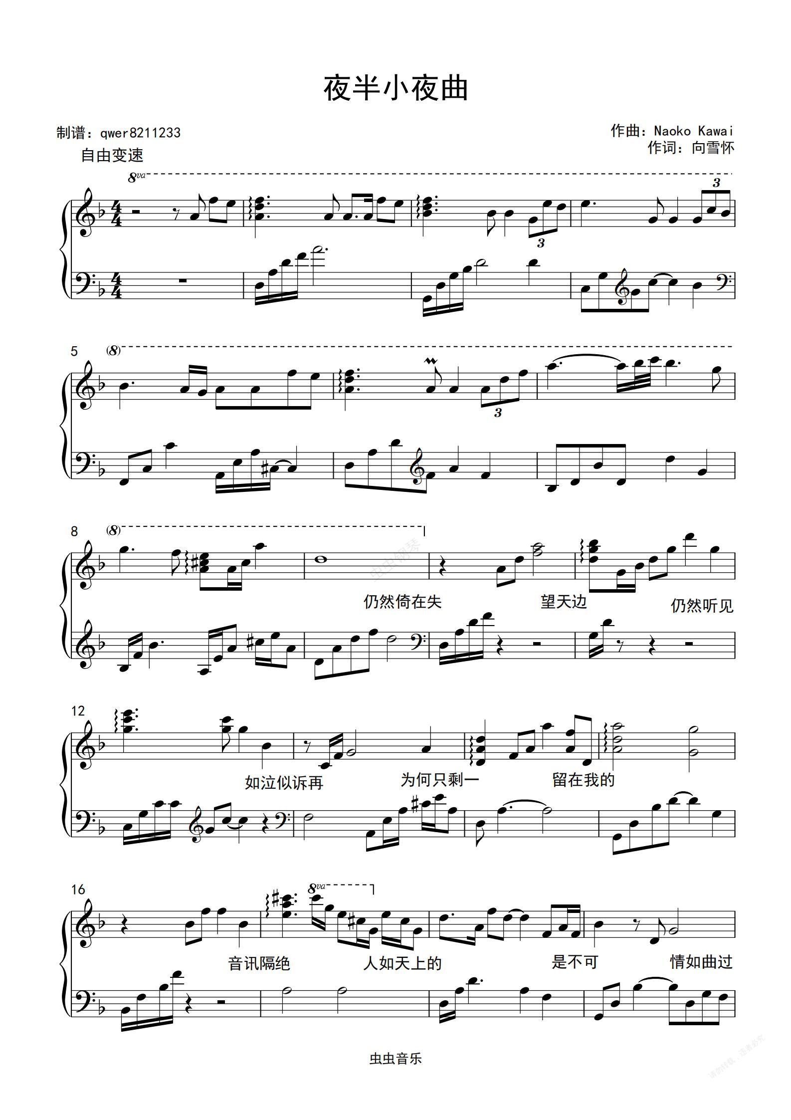 钢琴谱:夜半小夜曲